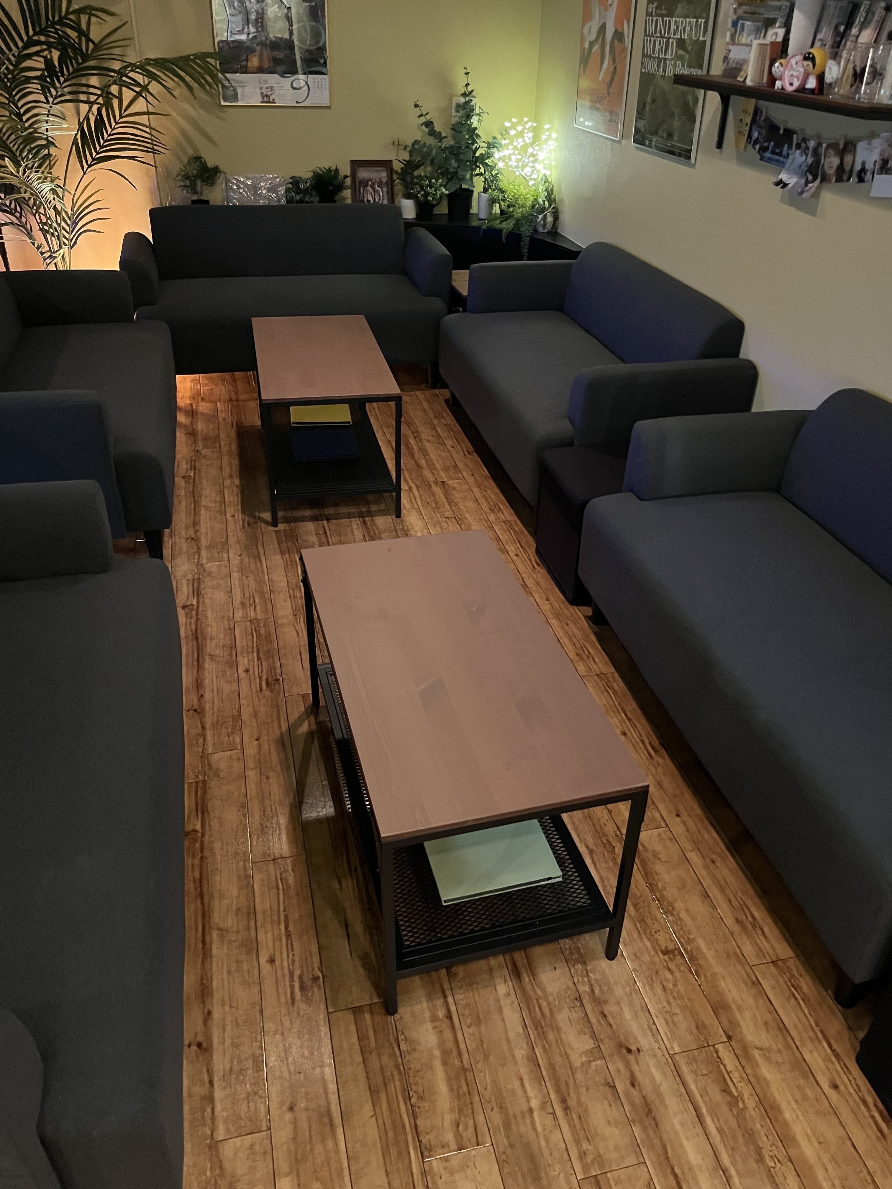 居抜きで残っていた古くさいソファーは捨てて、新調させていただきました!
