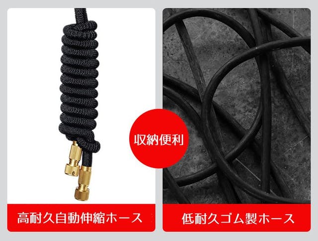 ホースの3倍伸縮、ノズルの螺旋状のタービン のダブル加圧により、強力な水圧で、汚れを一掃します。