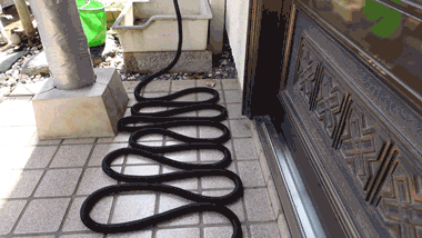ノズル部分はもちろん、ホース部分も丈夫で、コンパクトにまとめて、かさばらずに収納することができます。
