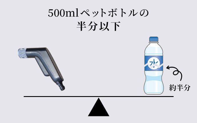 ホースは、3倍伸縮する特殊形状。ホースの高い伸縮性により、水が通ると自動で加圧し、水圧を強くする仕組みです。