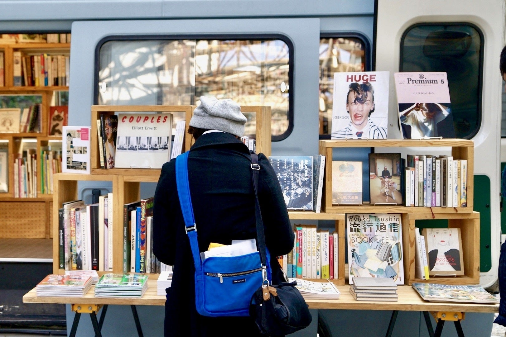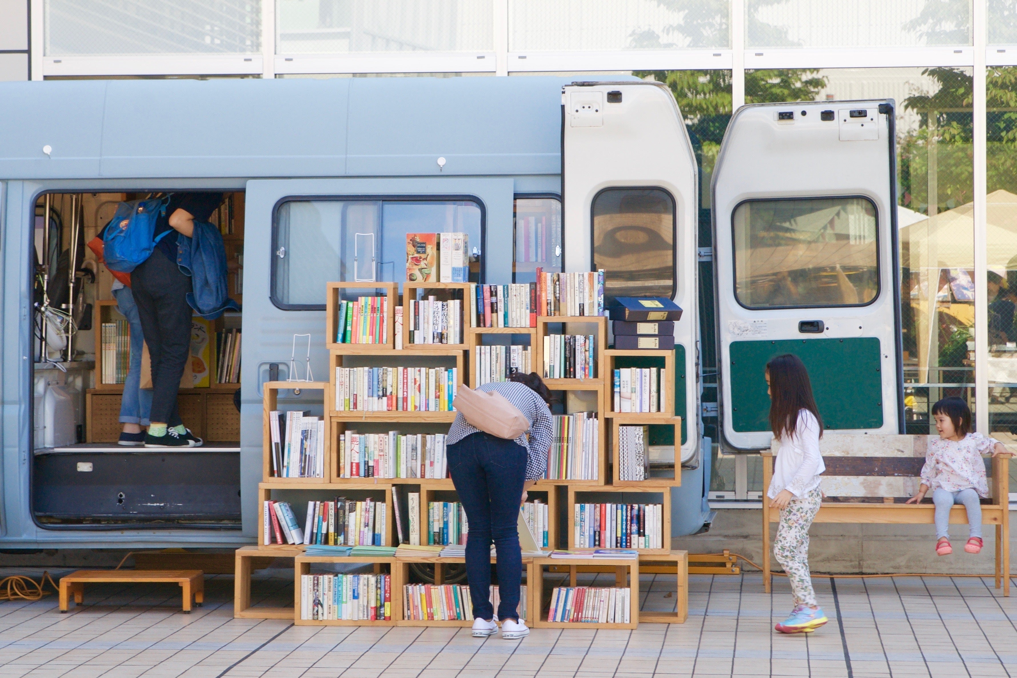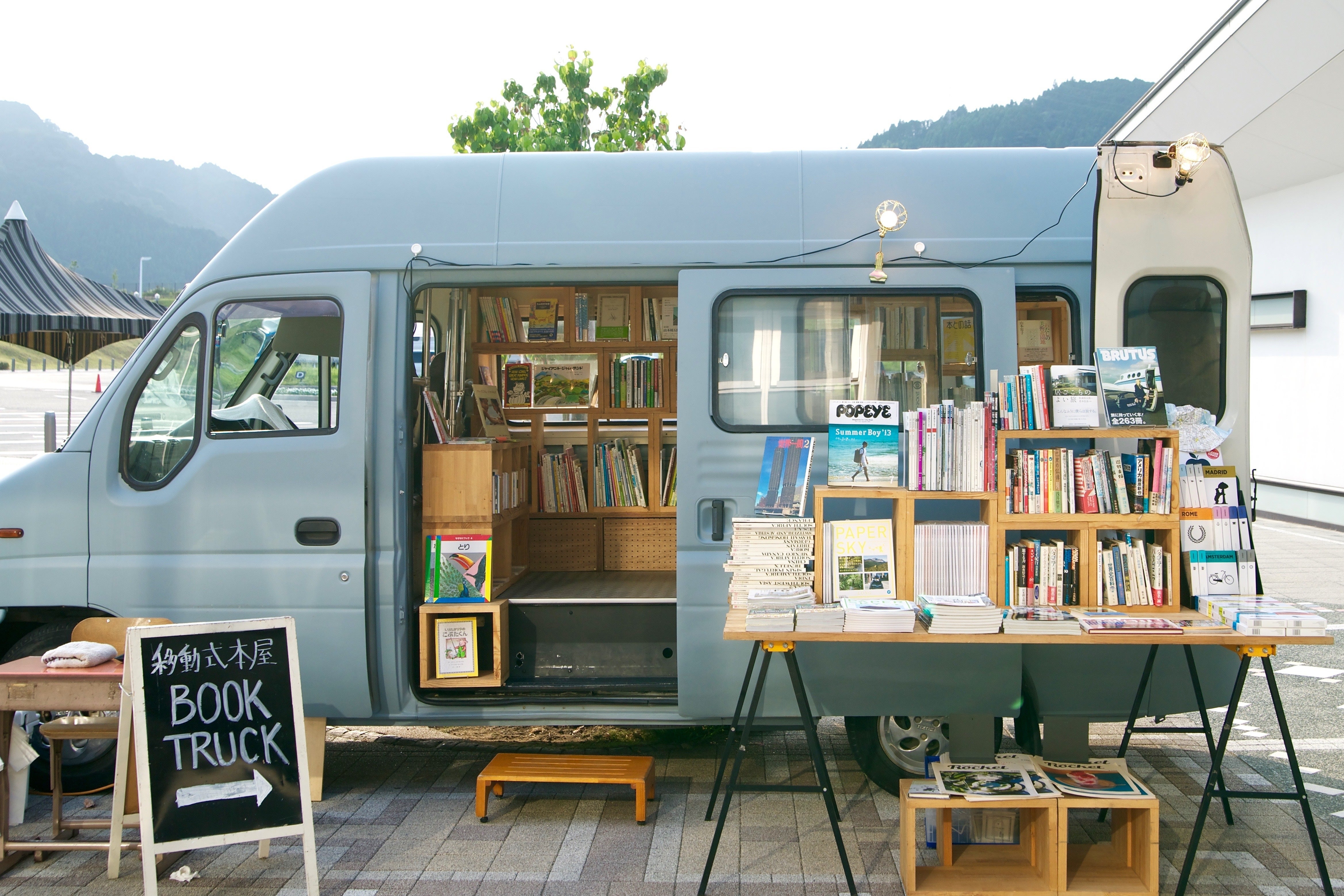 ブルーグレーのバンに本を積んでさまざまな場所に出店する移動式本屋BOOK TRUCKを運営している三田修平(みたしゅうへい)と申します。2012年より移動式の本屋を運営してきましたが、2022年8月21日(日)に三田が暮らす横浜市旭区の若葉台団地内にドリンクスタンドを併設した本屋BOOK STAND 若葉台をオープンします。