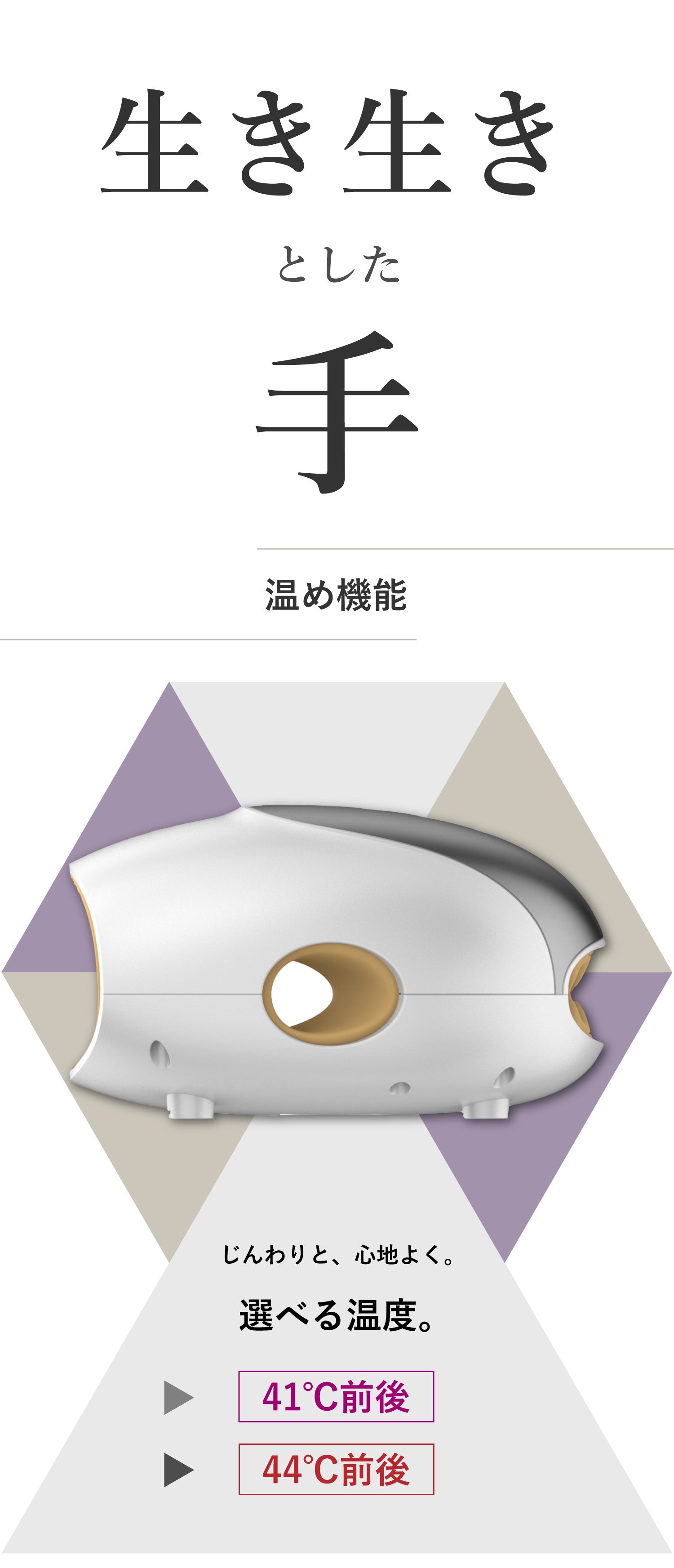 手を包み込むようにエアープレスと温め機能でリラックス。