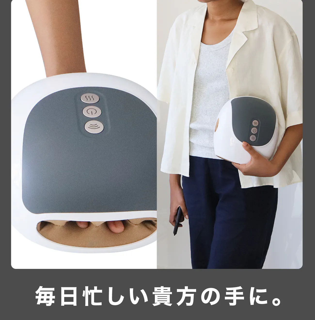 手を包み込むようにエアープレスと温め機能でリラックス。