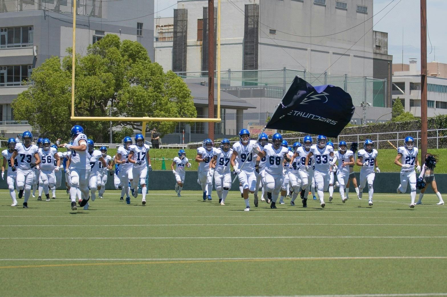 BLUE THUNDERSは日本社会人アメリカンフットボール協会(X2リーグ) に所属し、千葉県市川市を拠点として活動するアメリカンフットボールチームです。今シーズン、上位リーグ(X1Area)昇格を目指すとともに「エンターテイメント性あふれる空間づくり」を合言葉にただ強くなるだけではなく、アメリカンフットボール、チアリーディングを知らない人でも楽しめるスポーツに創り上げることを目標に掲げています。