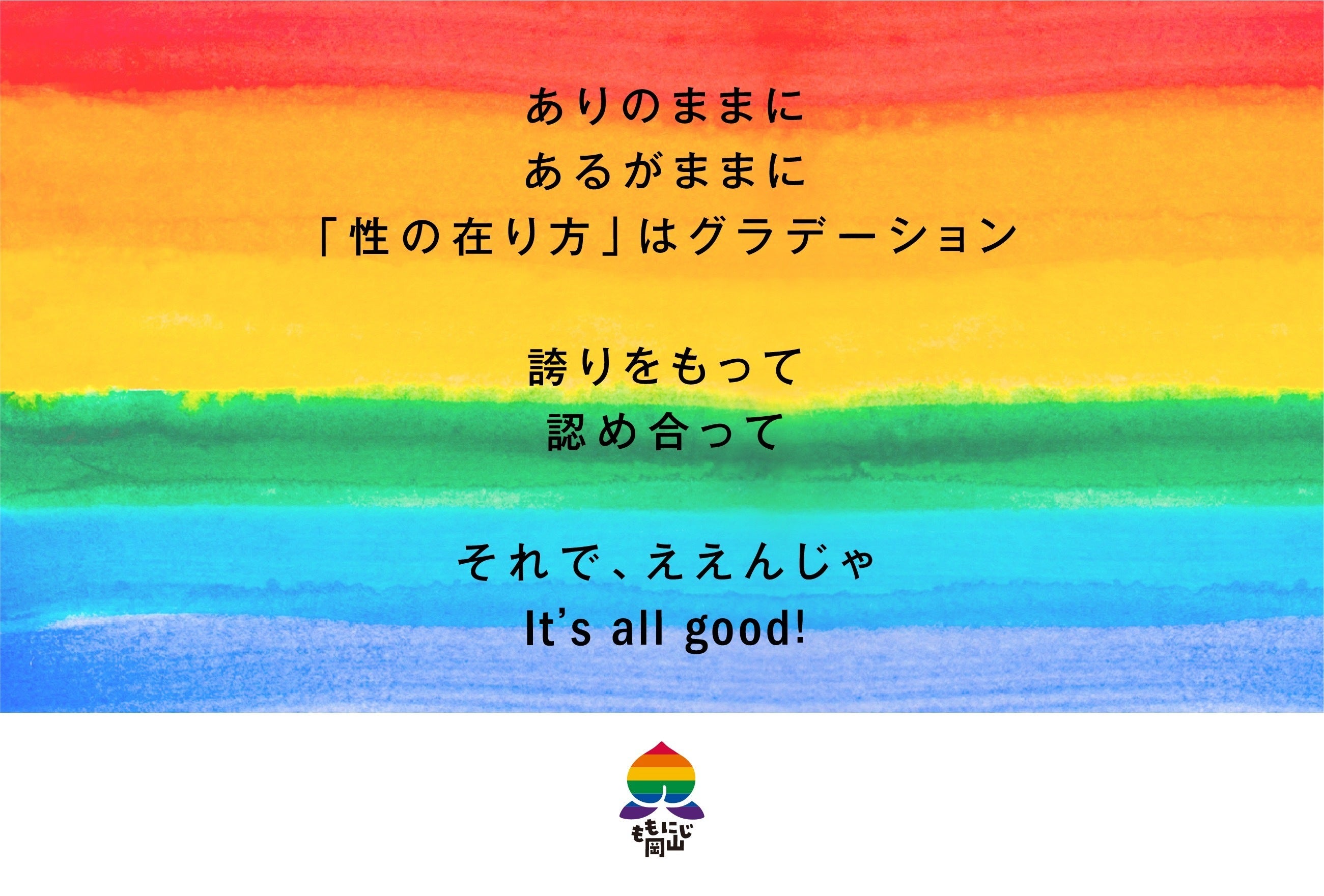 誰もが唯一無二の個性を持つかけがえのない存在であり、その「性の在り方」はグラデーションで多様です。自分とは異なる他者の存在を尊重し、肯定していきたい。その一方で、自分らしい在り方を自ら尊重し、肯定していきたい。そんな思いを、岡山の方言にこめて、「それで、ええんじゃっ〜It’s all good!〜」を今年のテーマにしました。