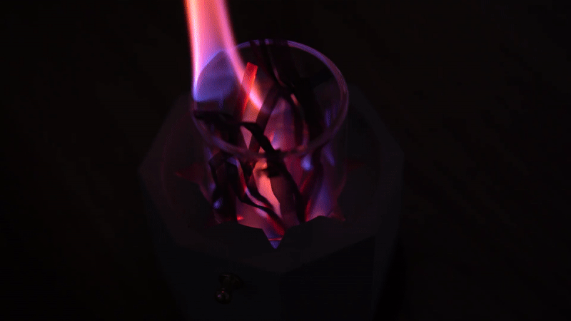 さらに、付属のステンレス薪(Stainless Firewood)により、青から赤に変わる複雑な焚き火をお楽しみ頂けます。