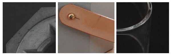 【素材】:コンクリート、強化ガラス、コルク、革、ステンレス