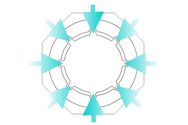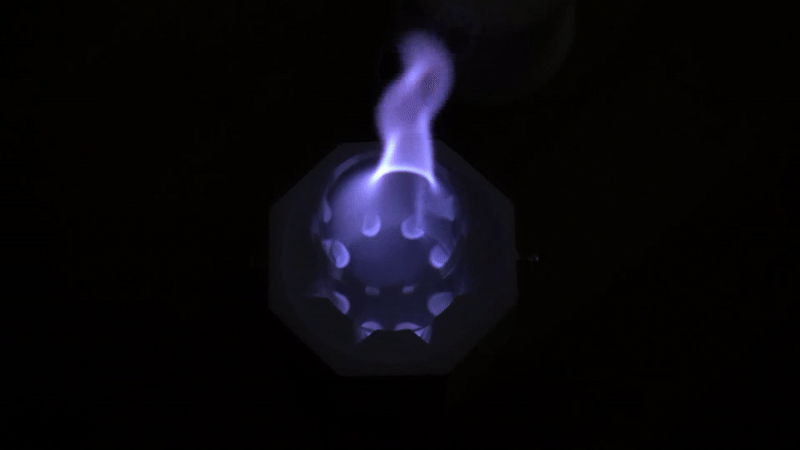 この8つの切込みは、実用的な意味もあります。この切込みにより、温度差が生じて対流現象が起きることで、まるで生きているように踊る魔法の炎が出現するのです。