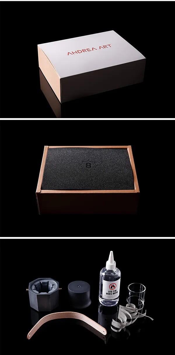 8つの星が集まってひとつの炎が完成するというコンセプトに基づいて作られた、オールハンドメイドのコンクリートの炉です。エタノールを燃料とし、美しい炎の様々な表情を楽しむことができる卓上焚き火セットとなります。