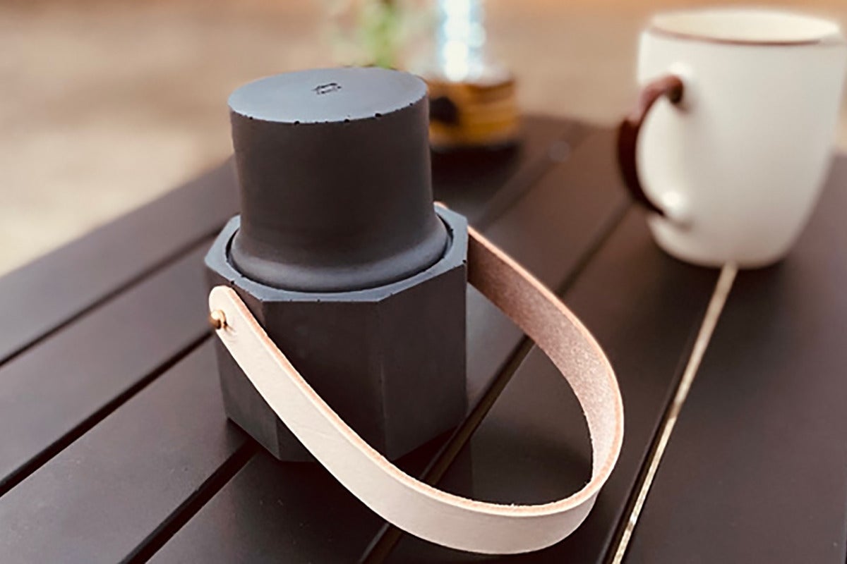 簡単に火を消すことができる蓋と滑り止めのシリコンパッド。より分厚くなった耐熱ガラス、そして天然皮革ストラップで安全性を高めています。