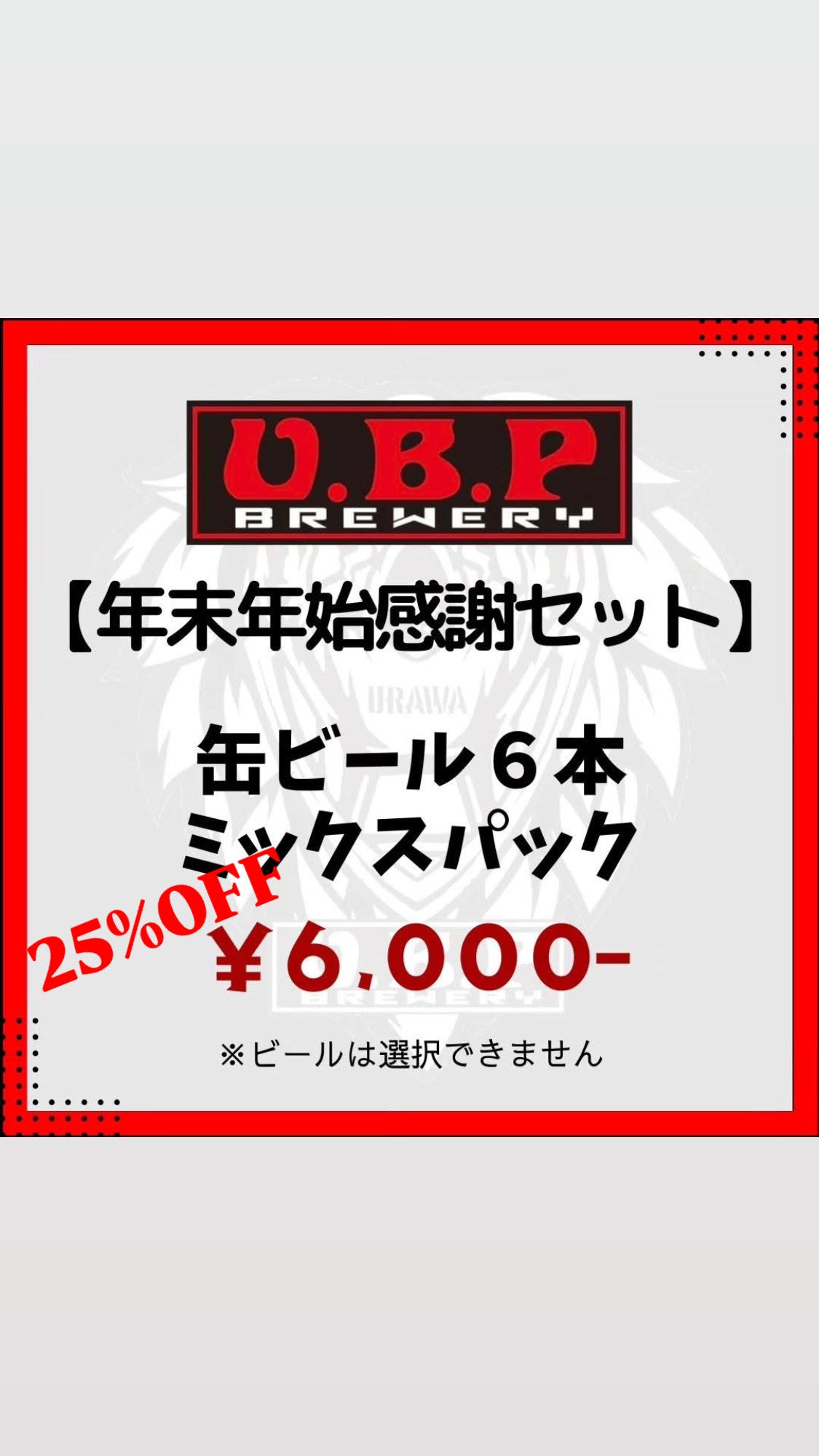 年末年始感謝セットといたしまして、U.B.P BREWERY製の缶ビール6本セットを店頭および通販サイトにて特別価格で販売いたします。