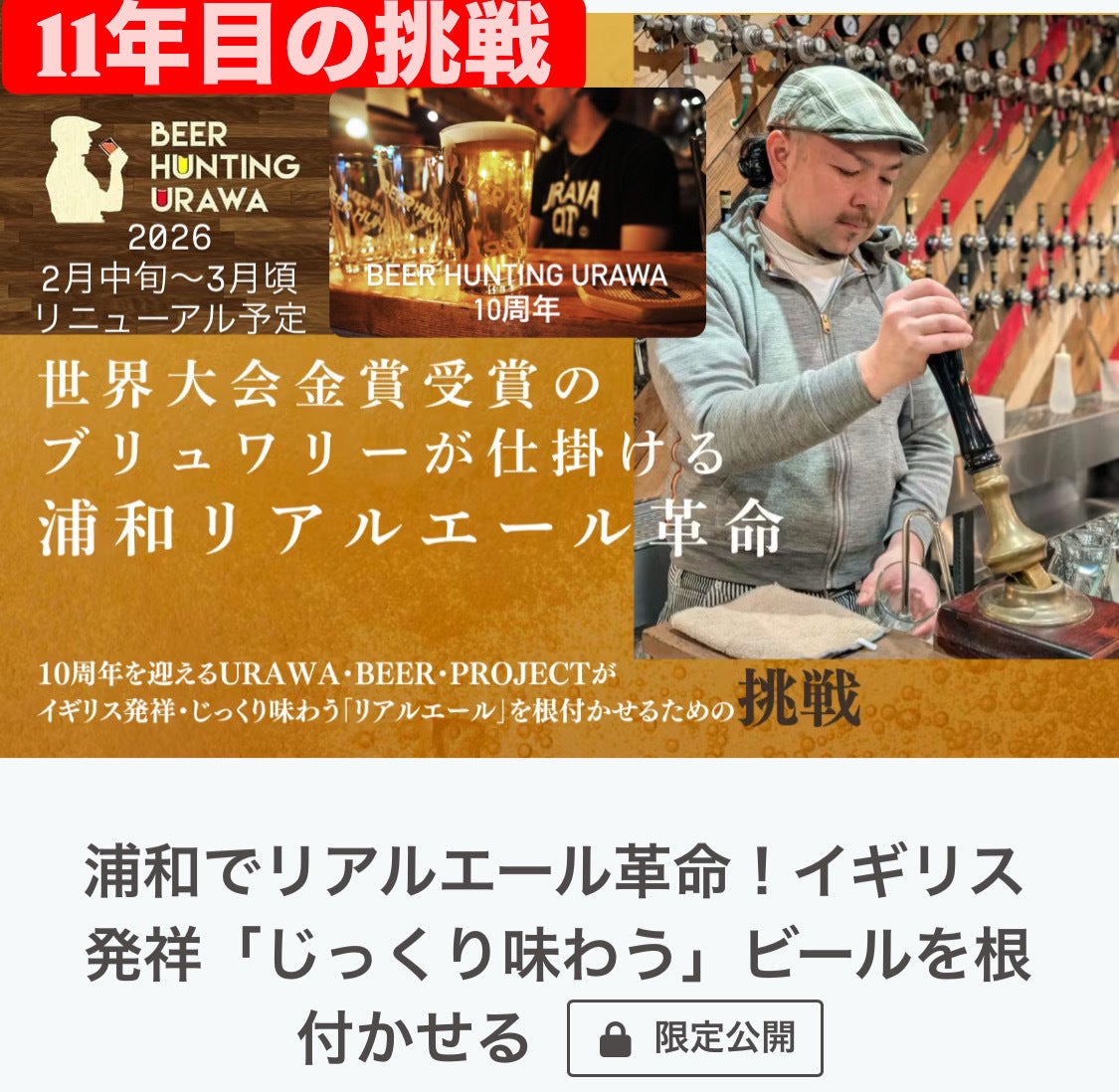 【U.B.P通信!?】やるやるからなかなか時間が掛かってしまいましたが諸々の調整などが着きましたのでいよいよ公開となります。私達の原点である創業の場であるBEER HUNTING URAWAのリニューアルプロジェクトイギリスの旧式サーバー導入による新たなビールの可能性を探求していきます。今回、導入予定のサーバーは日本にはまだほとんど輸入されていないモデルのハンドポンプサーバーを導入します。↑手配の検討がなかなかつかずに時間掛かってしまいました(^^;;※画像はイギリスのパブ設置のハンドポンプサーバー埼玉県ではハンドポンプサーバーが2台設置されてる店はないのでBEER HUNTING URAWAがハンドポンプサーバーで2種以上のビールを同時提供出来る初のお店になります。クラウドファンディングいよいよスタート2月15日(日)10:00〜3月25日(火)23:59まで/クラウドファンディングまもなく開始予定!!\頑張りますので、応援していただけると嬉しいです!開始前にお気に入り登録もぜひお願いします。こちらから↓https://camp-fire.jp/projects/905299/view