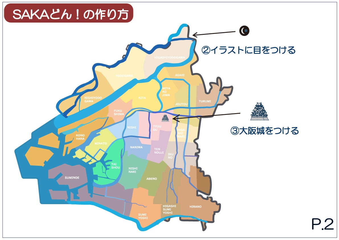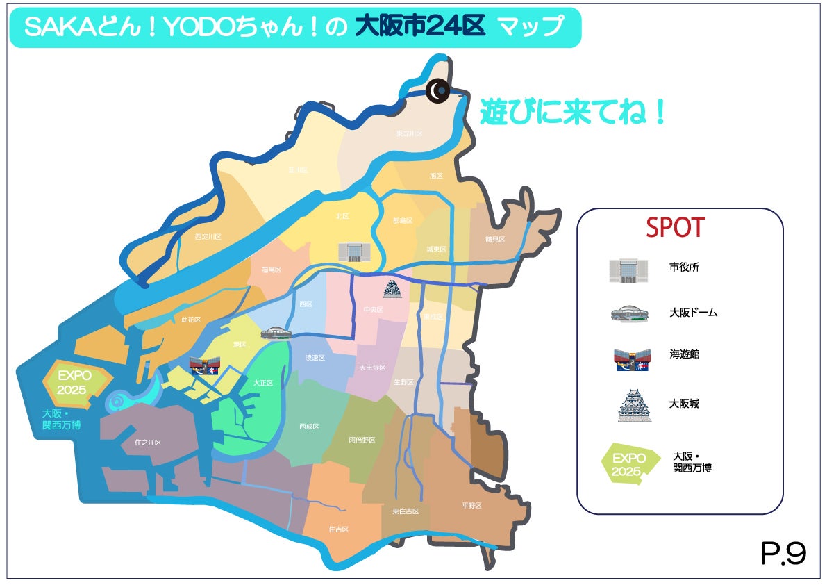 今回の”SAKAどんYODOちゃんの大阪市24区マップ”イラストブックは、P.1~P.9あります。