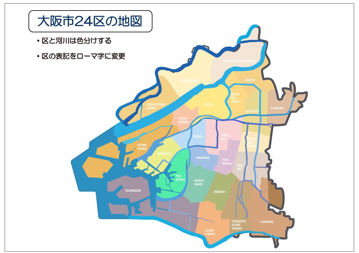 今回のプロジェクトでは、大阪市と24区のことを分かりやすくイラストで紹介したい!と思いました。