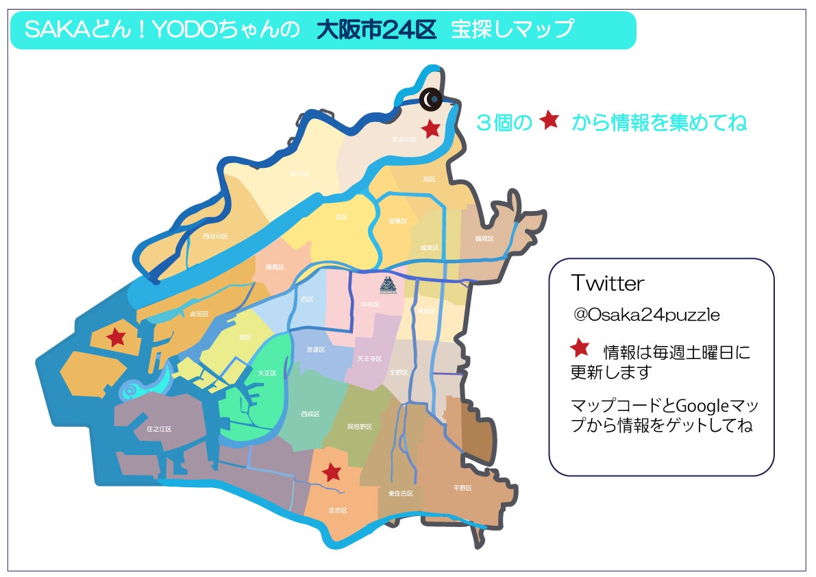 公式Twitterを通して会員限定の ”SAKAどん!YODOちゃん!宝探しマップ"の情報を配信致します。