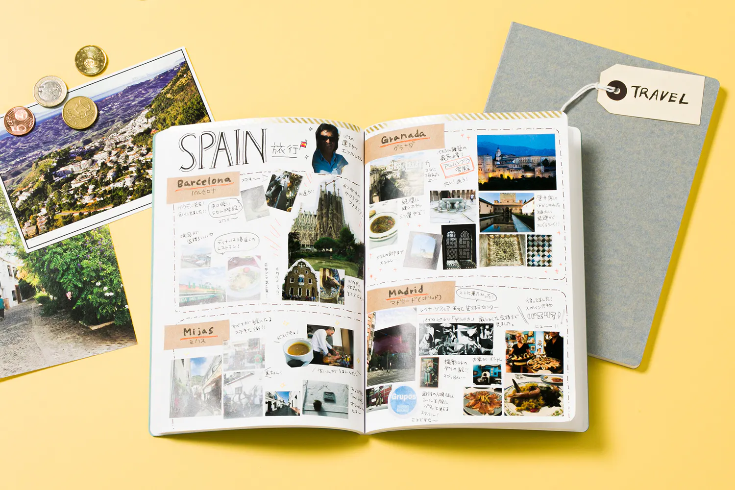 多くの方の手になじみやすいA5サイズ。 かさばらずに持ち運ぶことができると同時に、見開きにするとA4になるので、記入スペースも十分。無線綴じ7mmでボリュームがありますが、開きが良いのもうれしいポイントです。