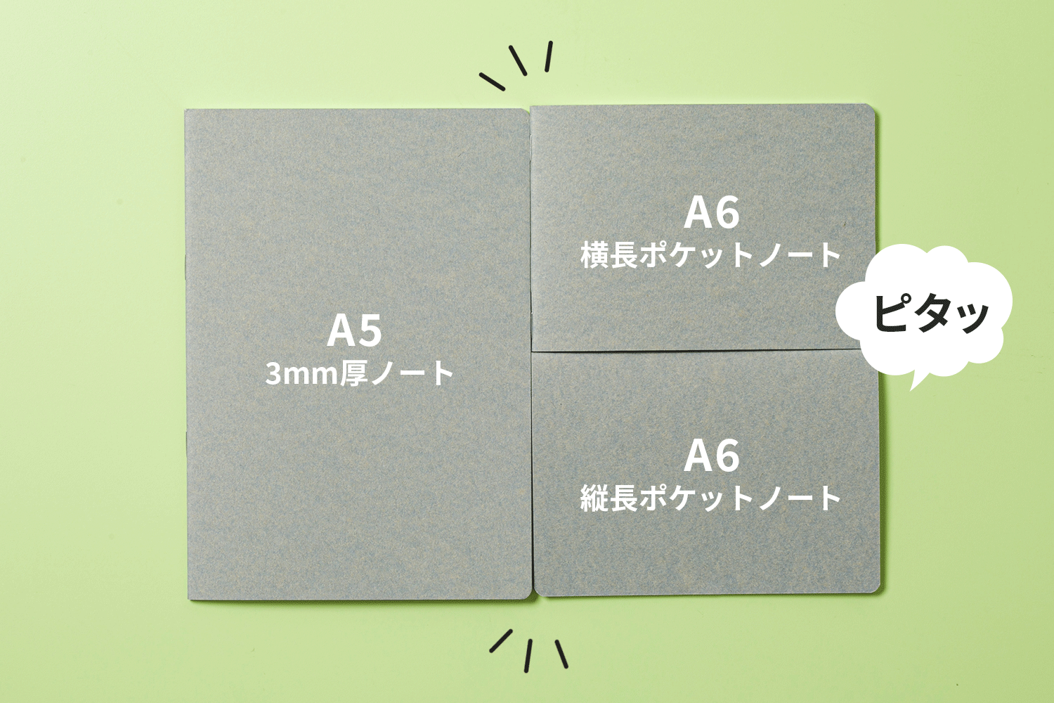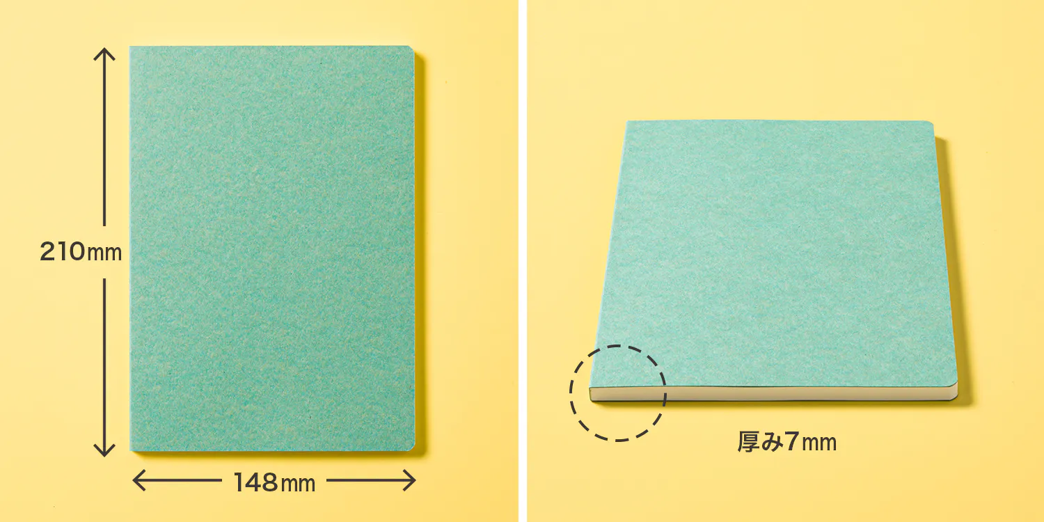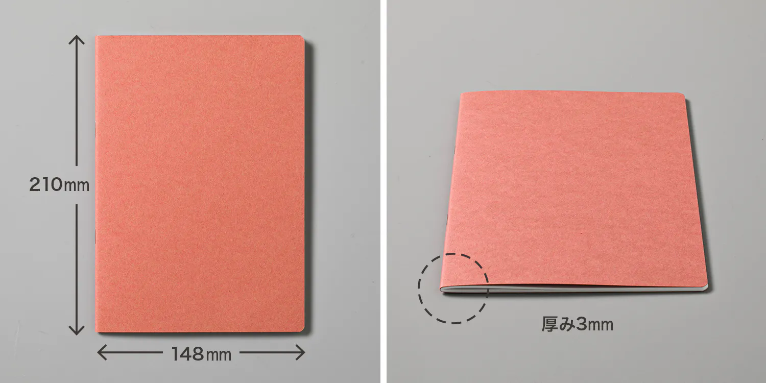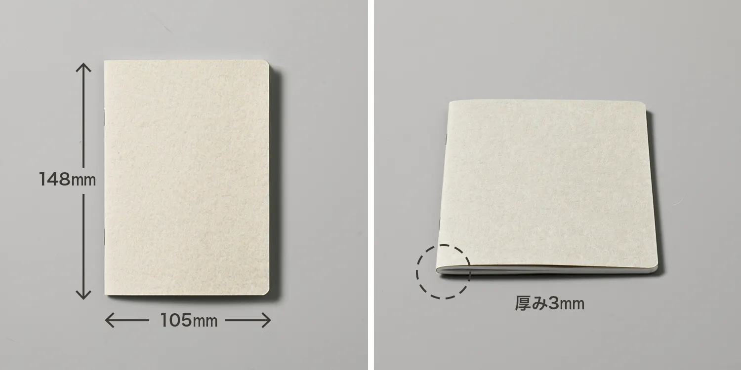 ポケットサイズの縦長ノートと横長ノートはA6サイズ。