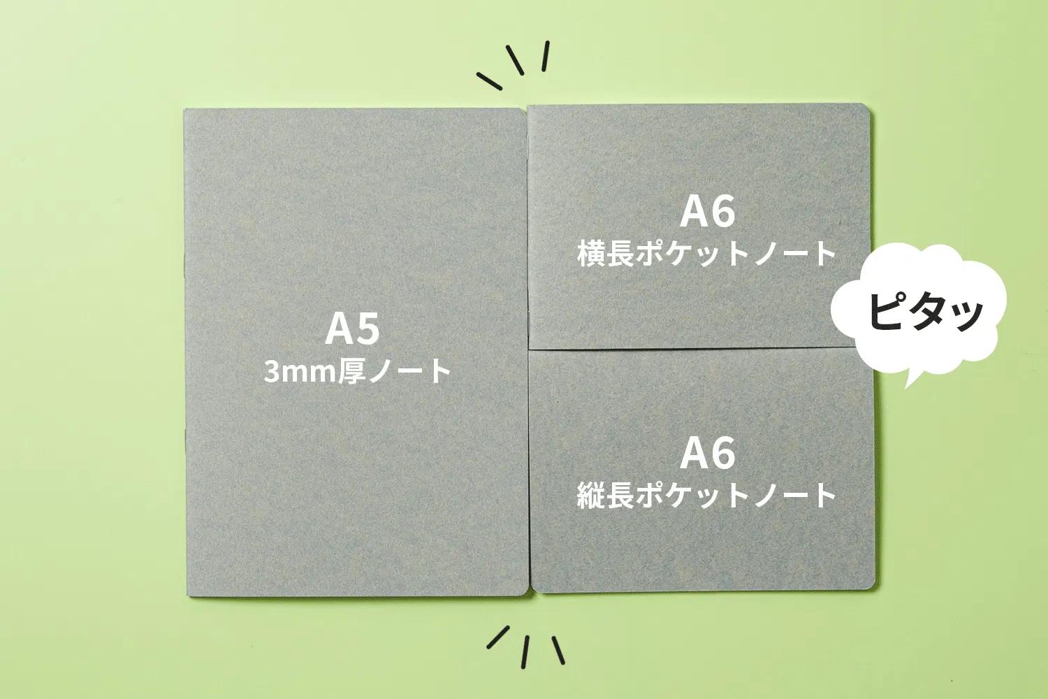 ポケットノート2冊分でA5ノート1冊と同面積になるので、ぴったり収まります。
