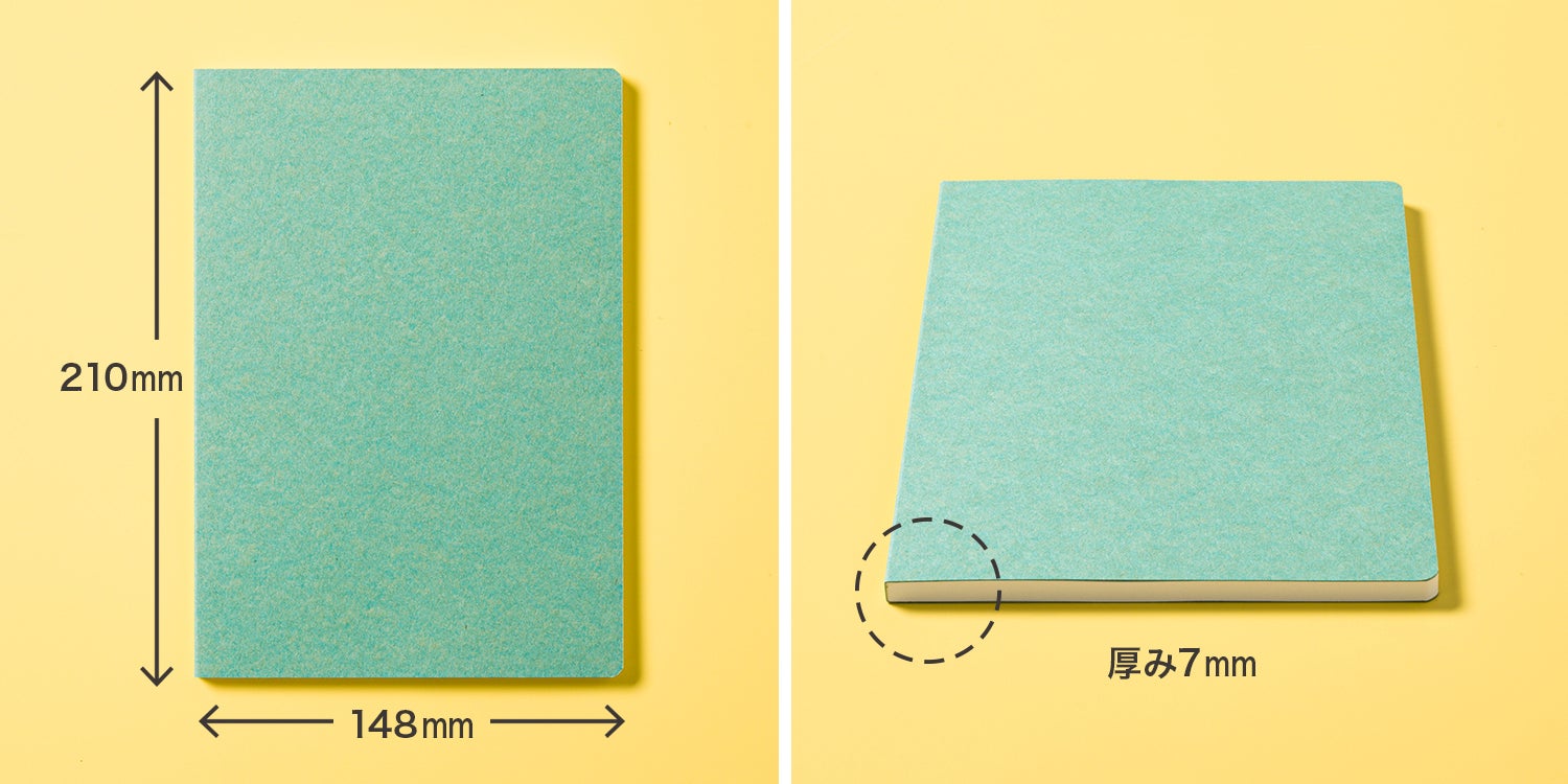 今回制作されたノートは中面にのみ、印刷工場で廃棄予定の紙が使用されます。廃棄予定の紙には様々な種類が含まれるため、シルバーダイヤSなどの紙を中心に、ノートとして適した厚みや質感の紙をチョイスし制作いたします。お届けさせていただくノートの紙質は、お手元に届いてからのお楽しみとなります。また、厚みを基準にさせていただくため、ページ数には多少の前後がございます。