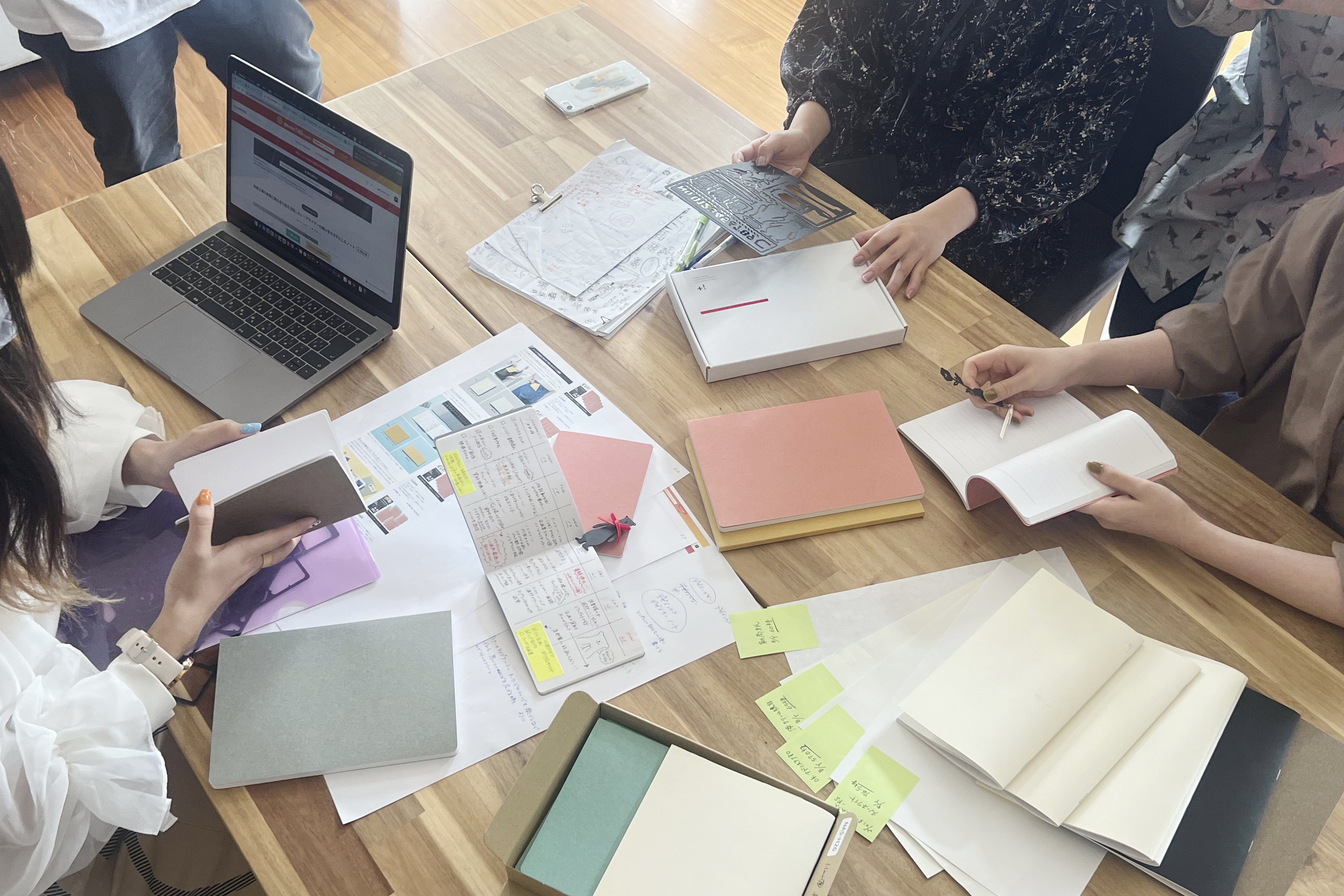 それならば「私たちが毎日使えるノートを作ろう!」という想いから、今回のプロジェクトがスタートしました。リサーチを進めると、気楽に持ち歩きたい小型・軽量派から、しっかりしたノートを愛着を持って使いたいボリューム派まで、ノートの好みは本当に十人十色でした。