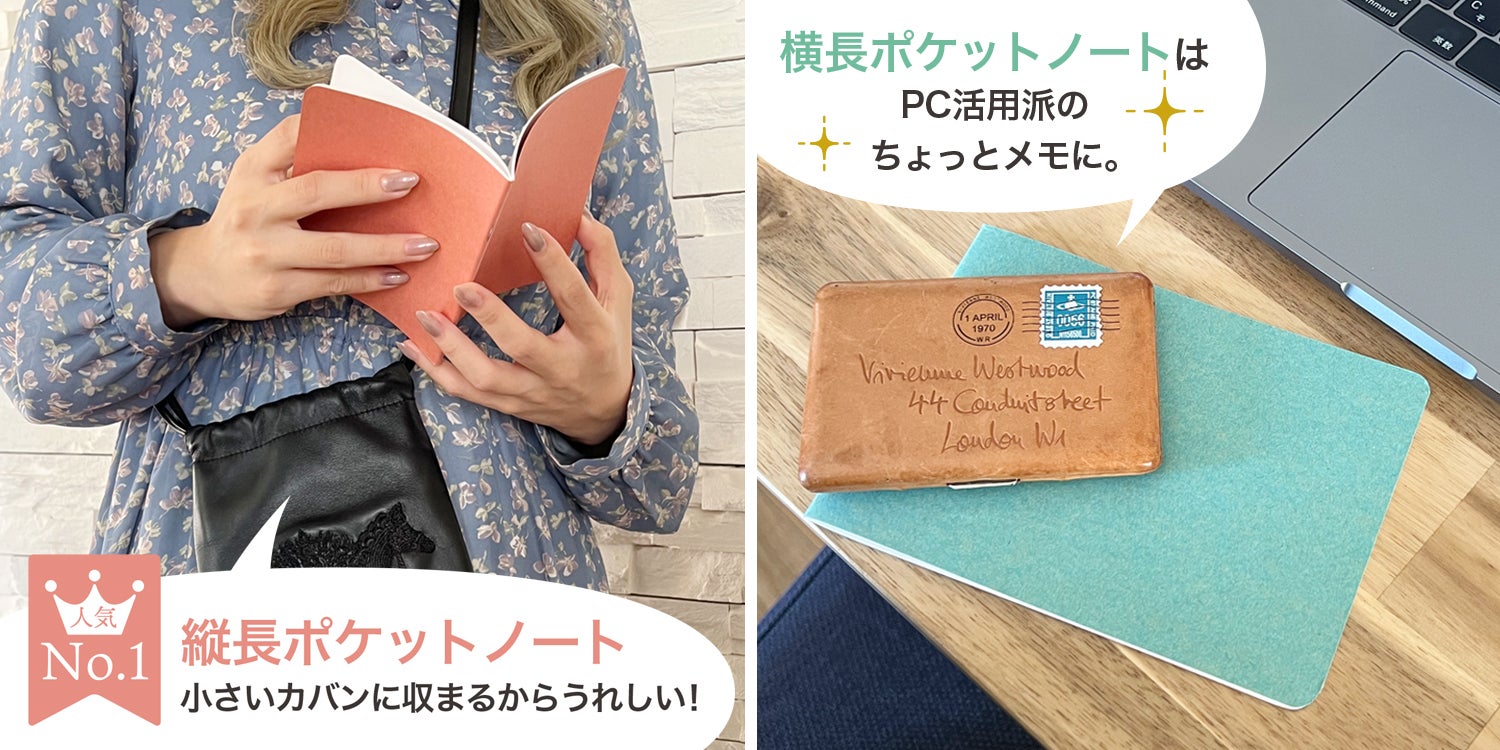 「縦長ポケットノート」「横長ポケットノート」が人気です。