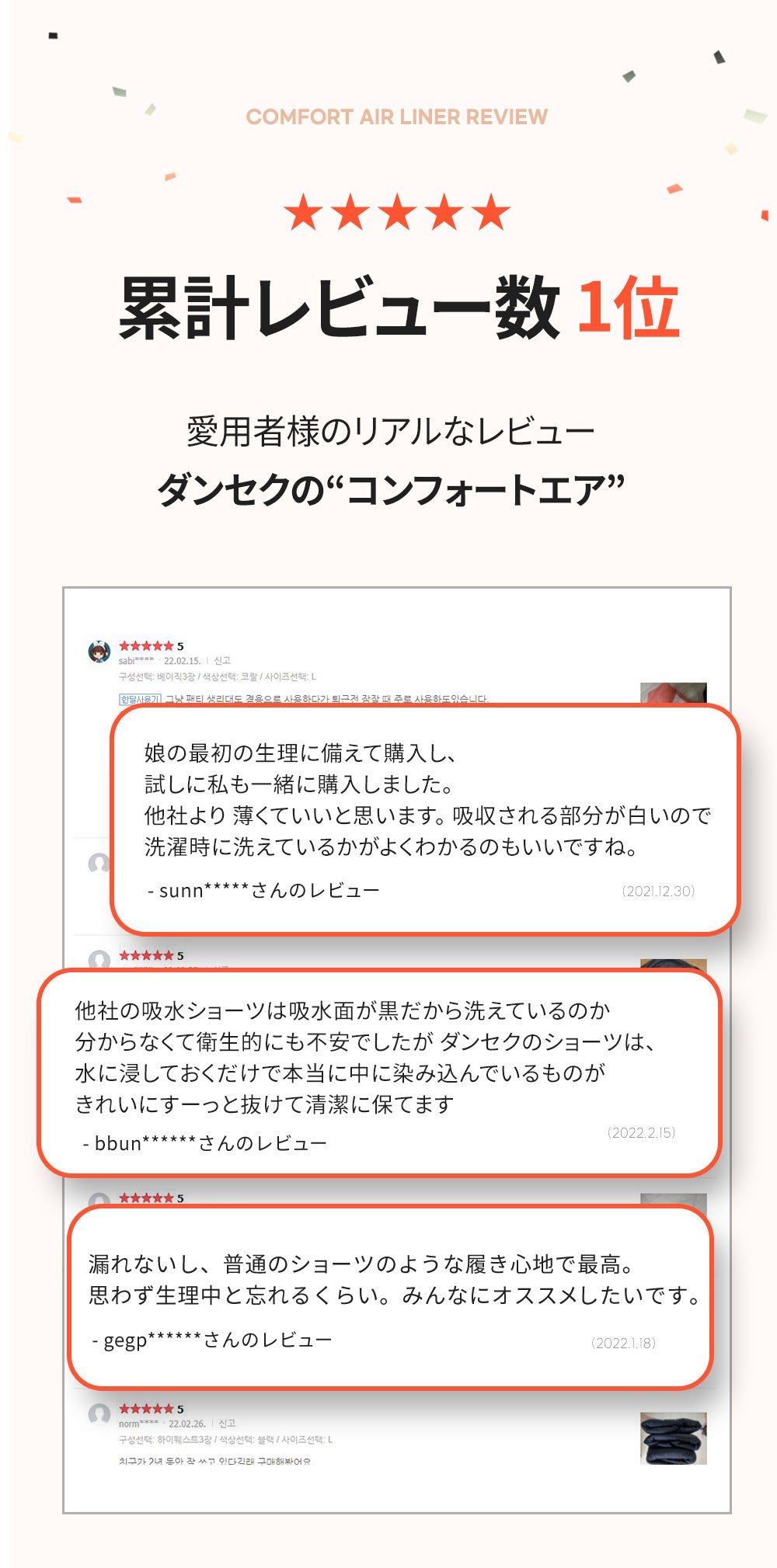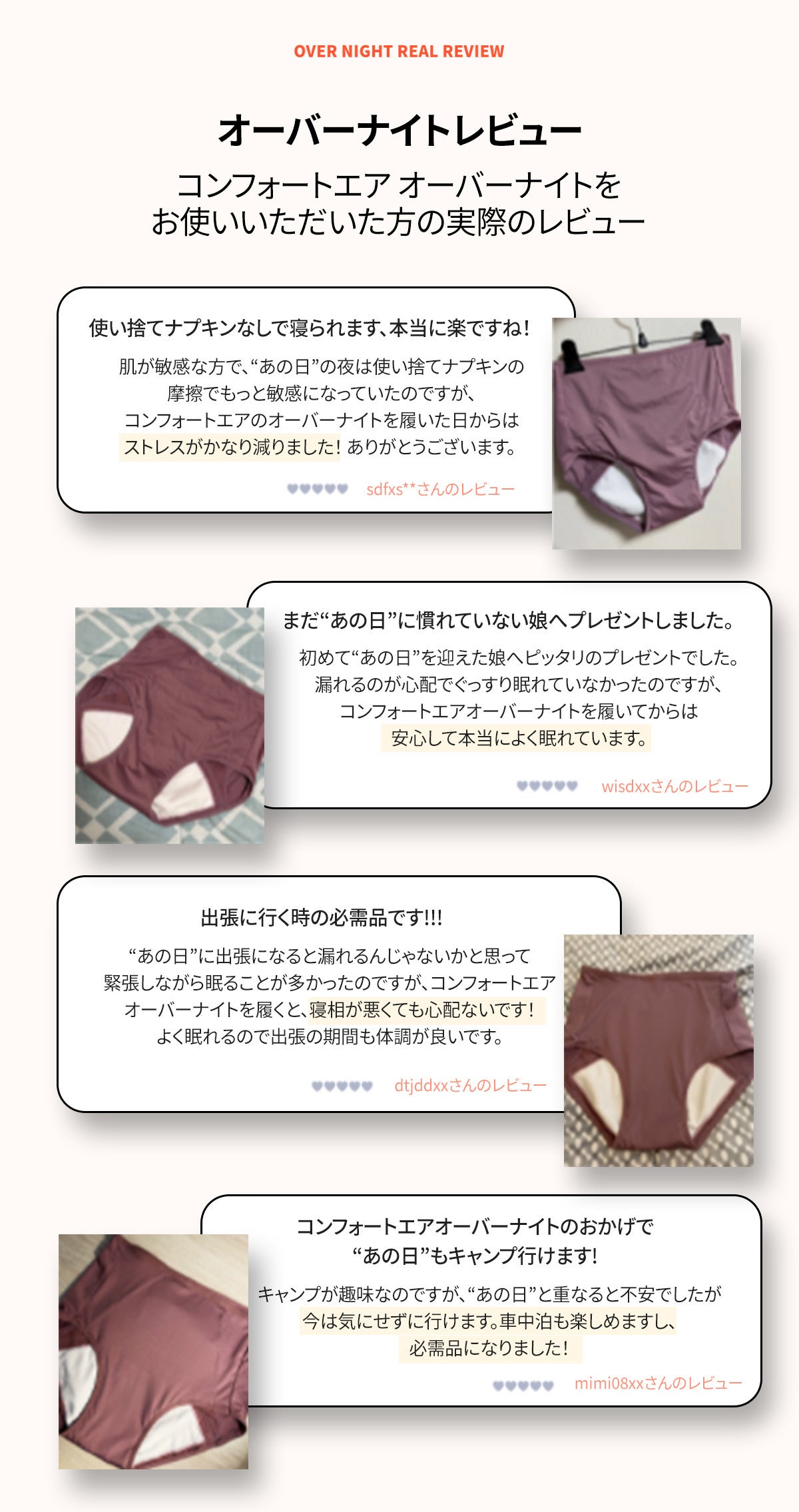 2023/01/25 20:41こんにちは、ダンセクです。改めて、この度はたくさんのご支援を本当にありがとうございました。1/23(月)に、ご支援いただいた全ての方への商品の発送が完了いたしました。無事にお手元に届いておりますでしょうか?早速、ご支援いただいた方から、「届いたその日にちょうど生理が始まったので履いてみました!」というお声とともに、詳細なレビューがインスタグラムの方に届き、大変嬉しく思っております。インスタグラムのハイライト、「お客様の声」にまとめてありますので、ぜひお時間ある時にご覧いただければ幸いです。また、使用方法など気になることがございましたら、お気軽に下記インスタグラム、またはメールまでご連絡くださいませ。今後ともよろしくお願いいたします。■インスタグラムhttps://instagram.com/dansaek_jp■メールinfo@unde.co.jp もっと見るお礼と発送開始日のおしらせ