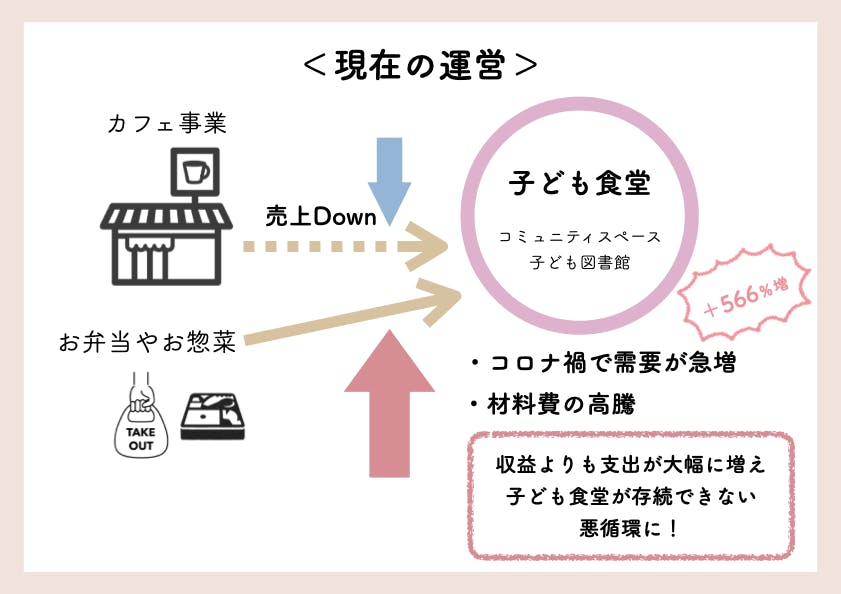 それとは相反し、子ども食堂利用の急増、および材料費の高騰により、このままでは活動を続けていくことが困難となりました。