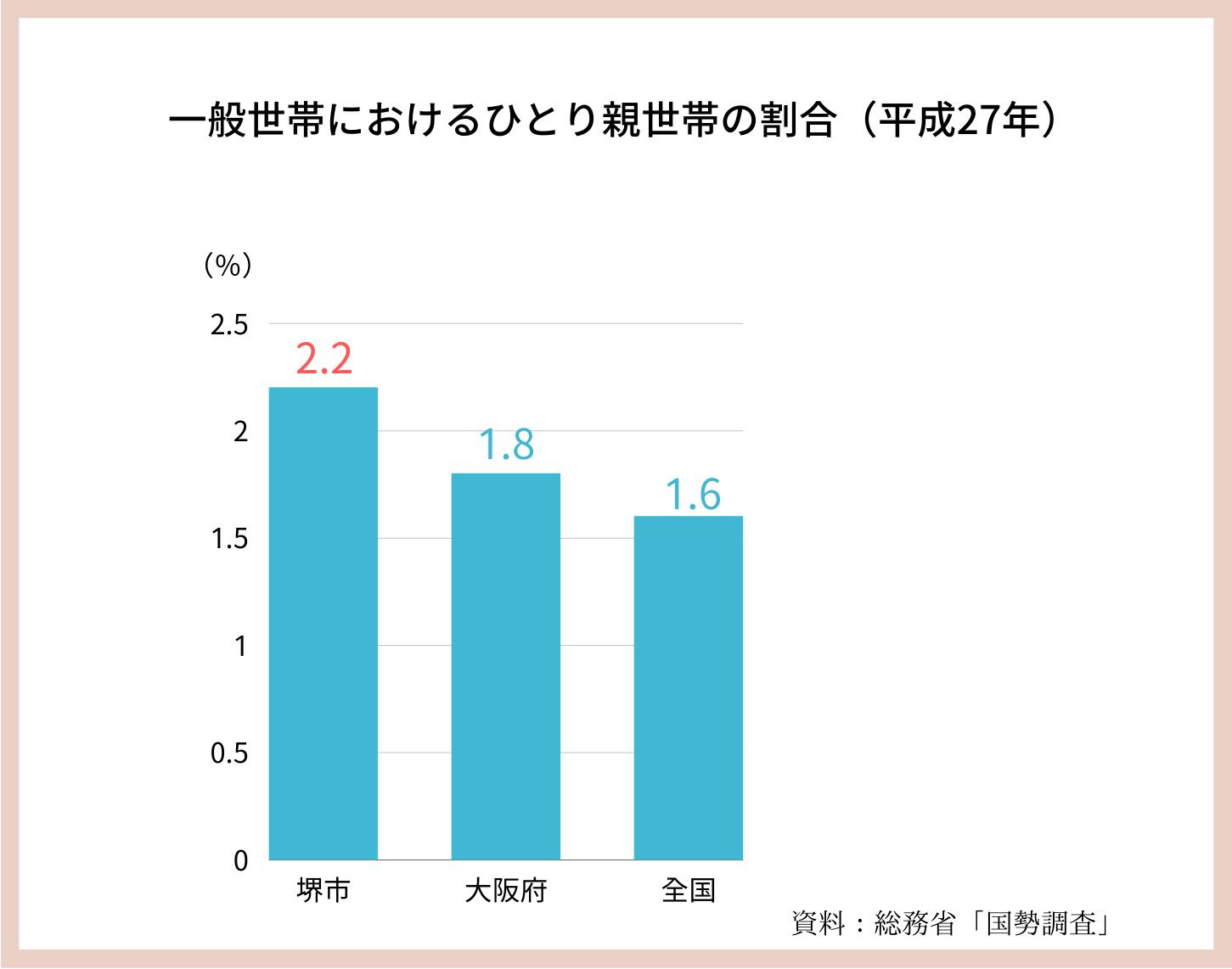 堺市のひとり親世帯の割合は、全国平均と比べて8%も高く、ゆえに貧困率も高いです。