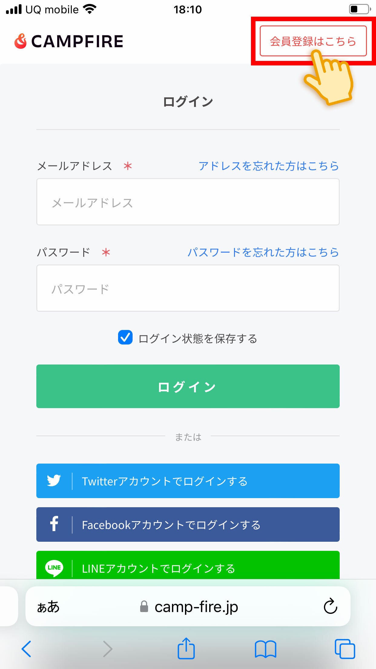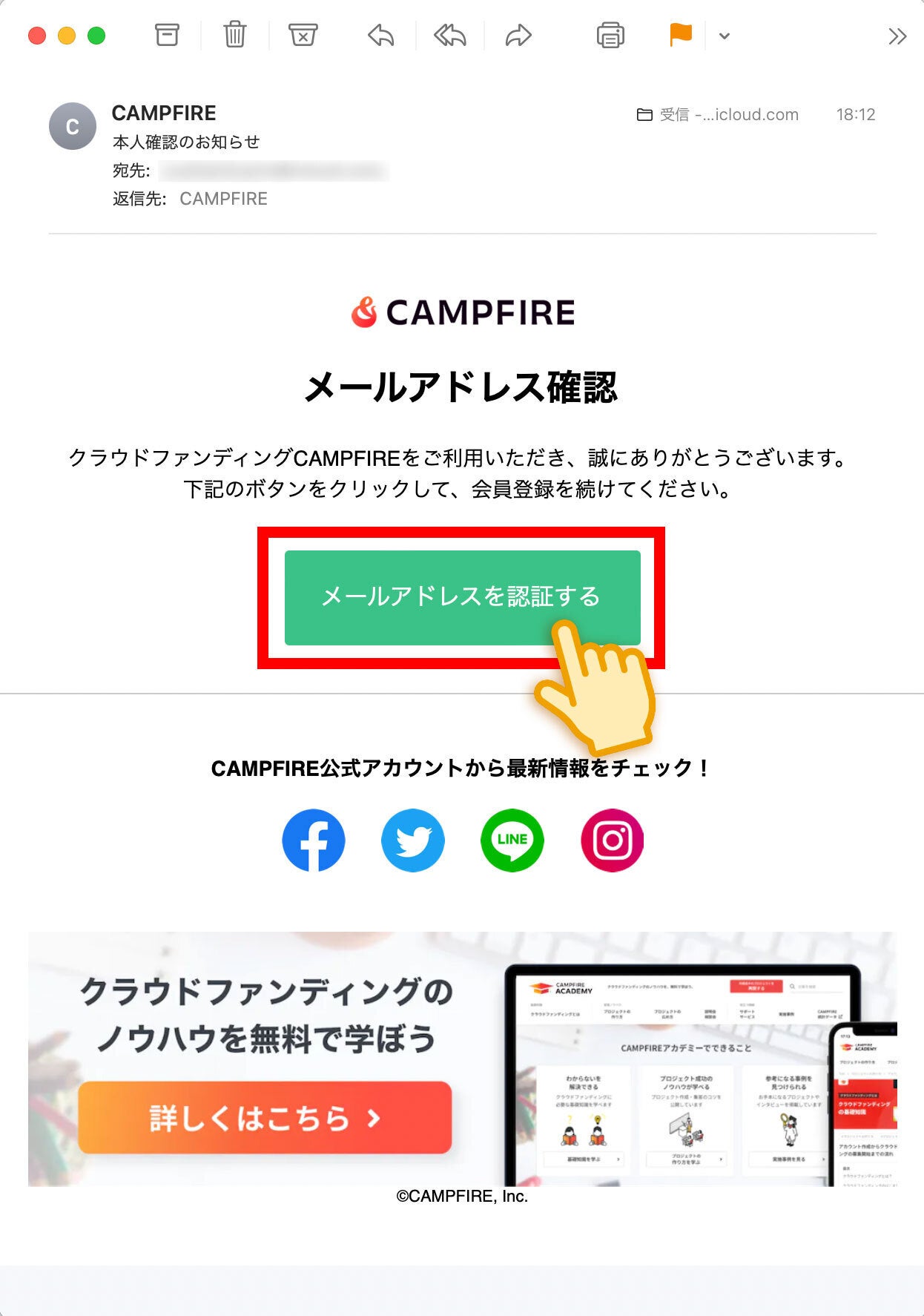 ⑤メールを確認します。CAMPFIREから届いたメールを開き、[メールアドレスを認証する]をタップします。