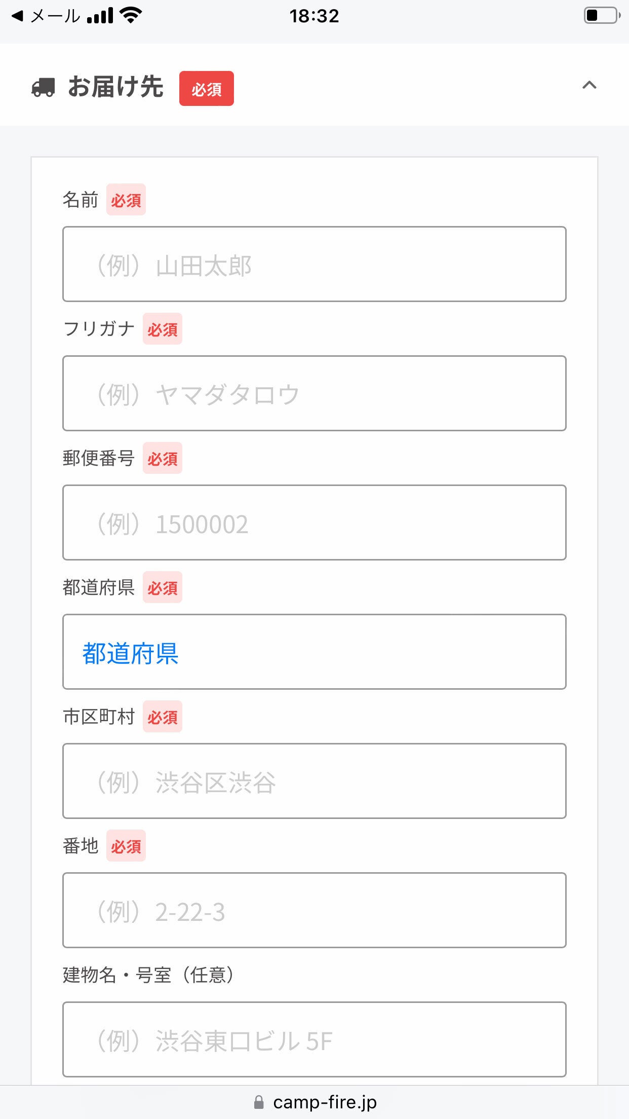 ⑩5,000円以上のご支援の場合は、お届け先の情報を入力してください。