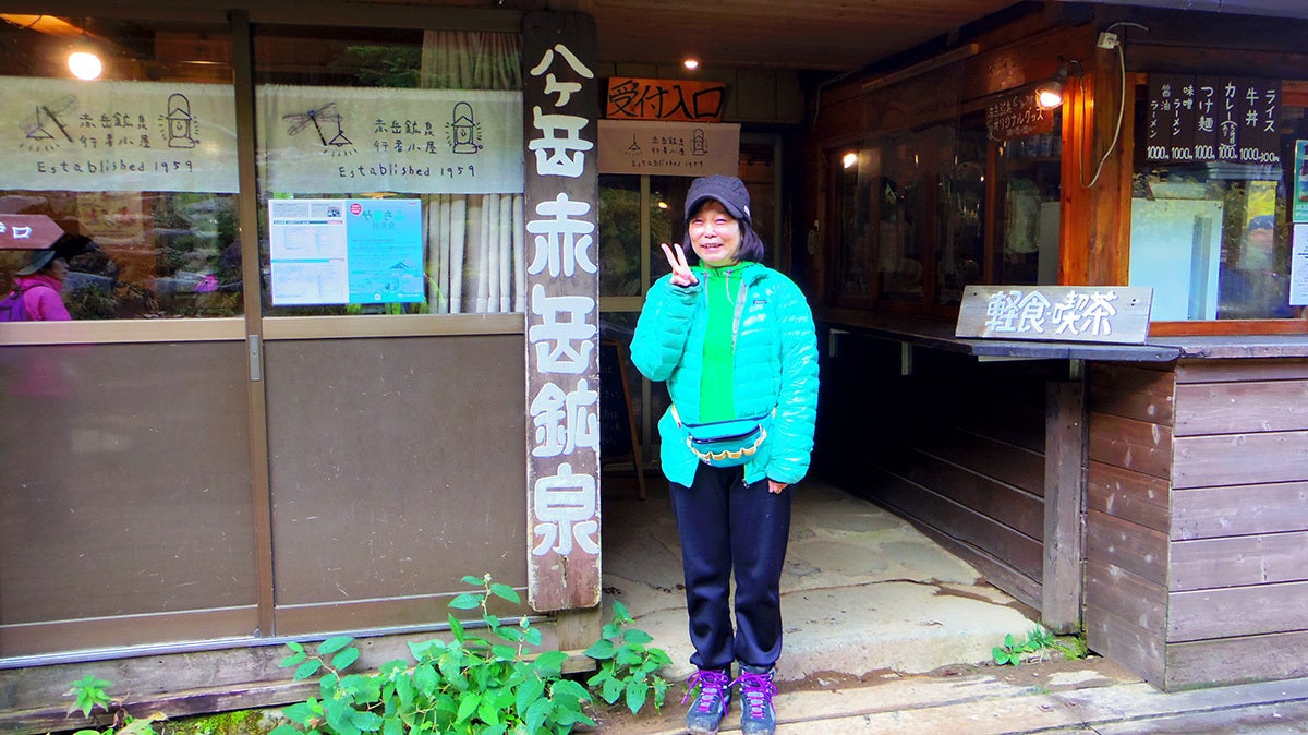 3時間半歩いたところで、宿泊地の赤岳鉱泉が見えてきました。