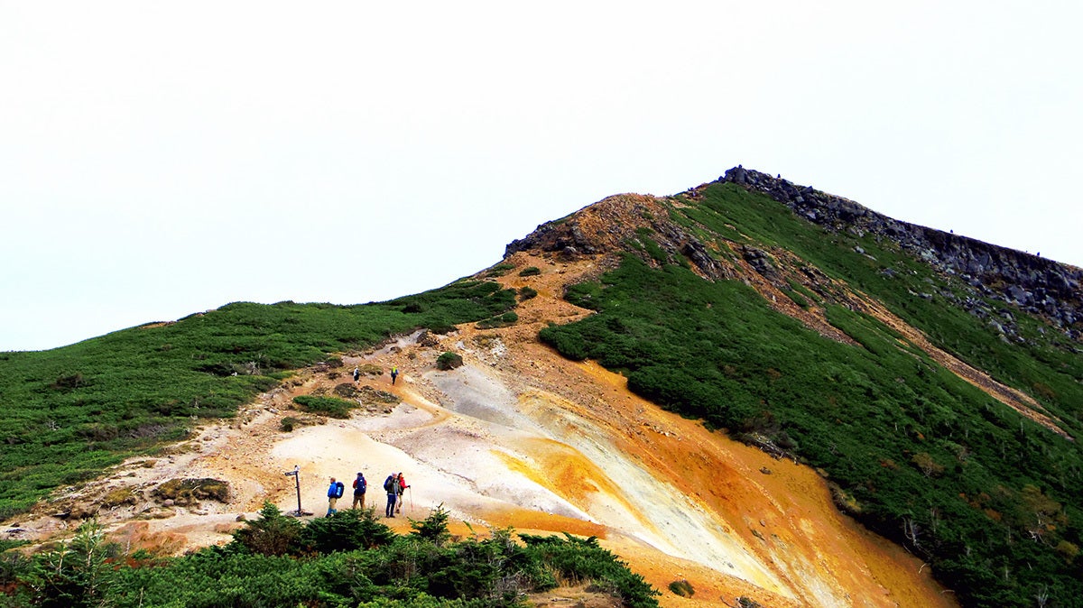 なだらかな登りをひたすら1時間50分歩くと、森林限界を越え、視界がひらけました。