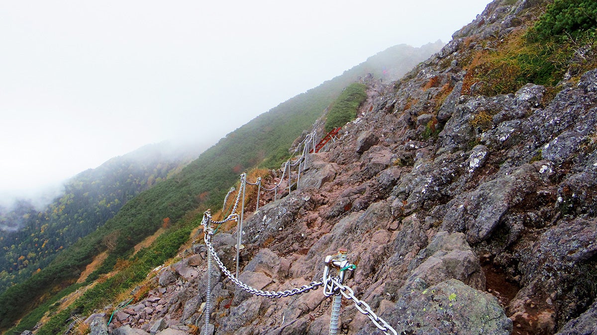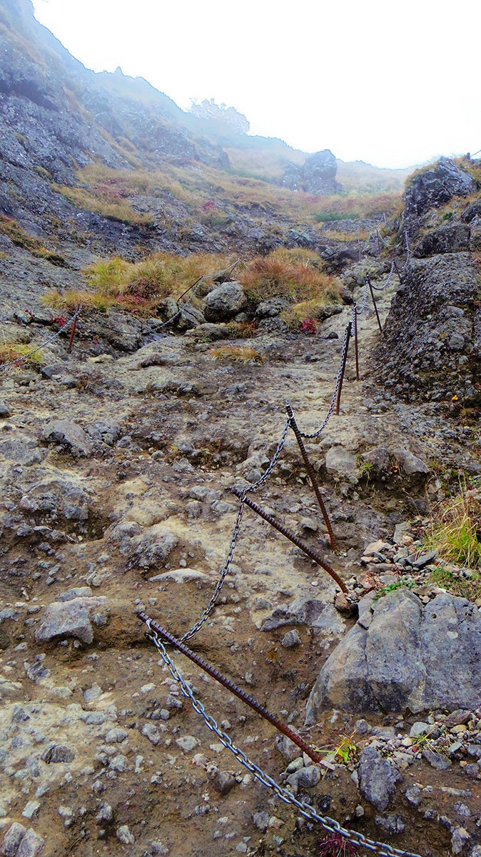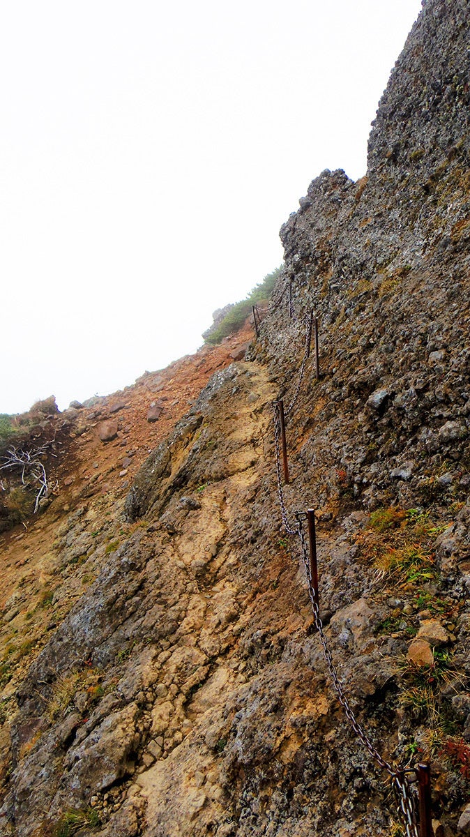 写真ではわかりにくいのですが、すごい急な斜面に鎖が張られています。