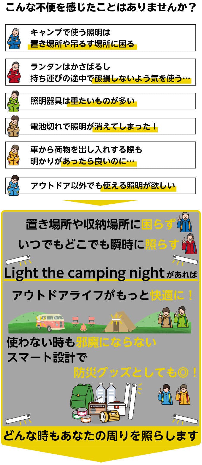 Light the camping nightを手に取って頂いた皆様に、ご満足頂けるよう努めさせて頂きますので、 応援よろしくお願いいたします。