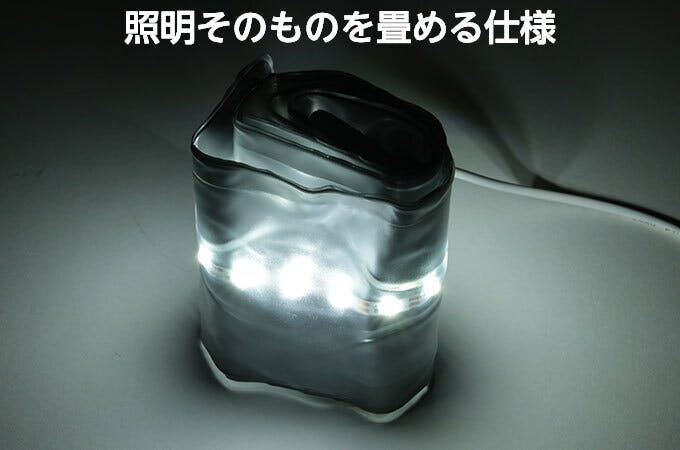 さらにLight the camping nightのもうひとつのポイントは、「照明そのものを折り畳める仕様」!