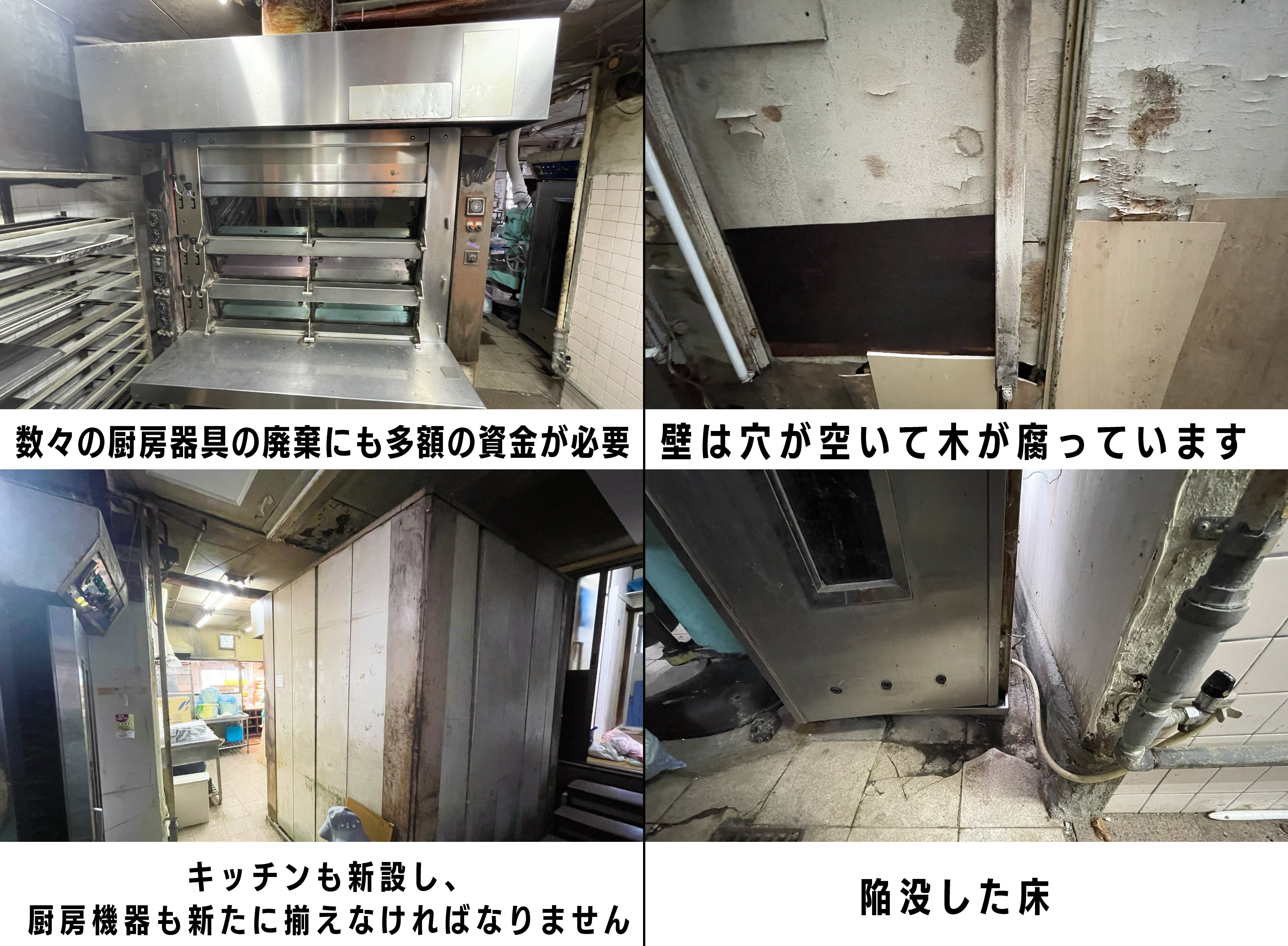 数々の厨房器具の廃棄にも多額の資金が必要で、キッチンも新設し、厨房機器も新たに揃えなければなりません。