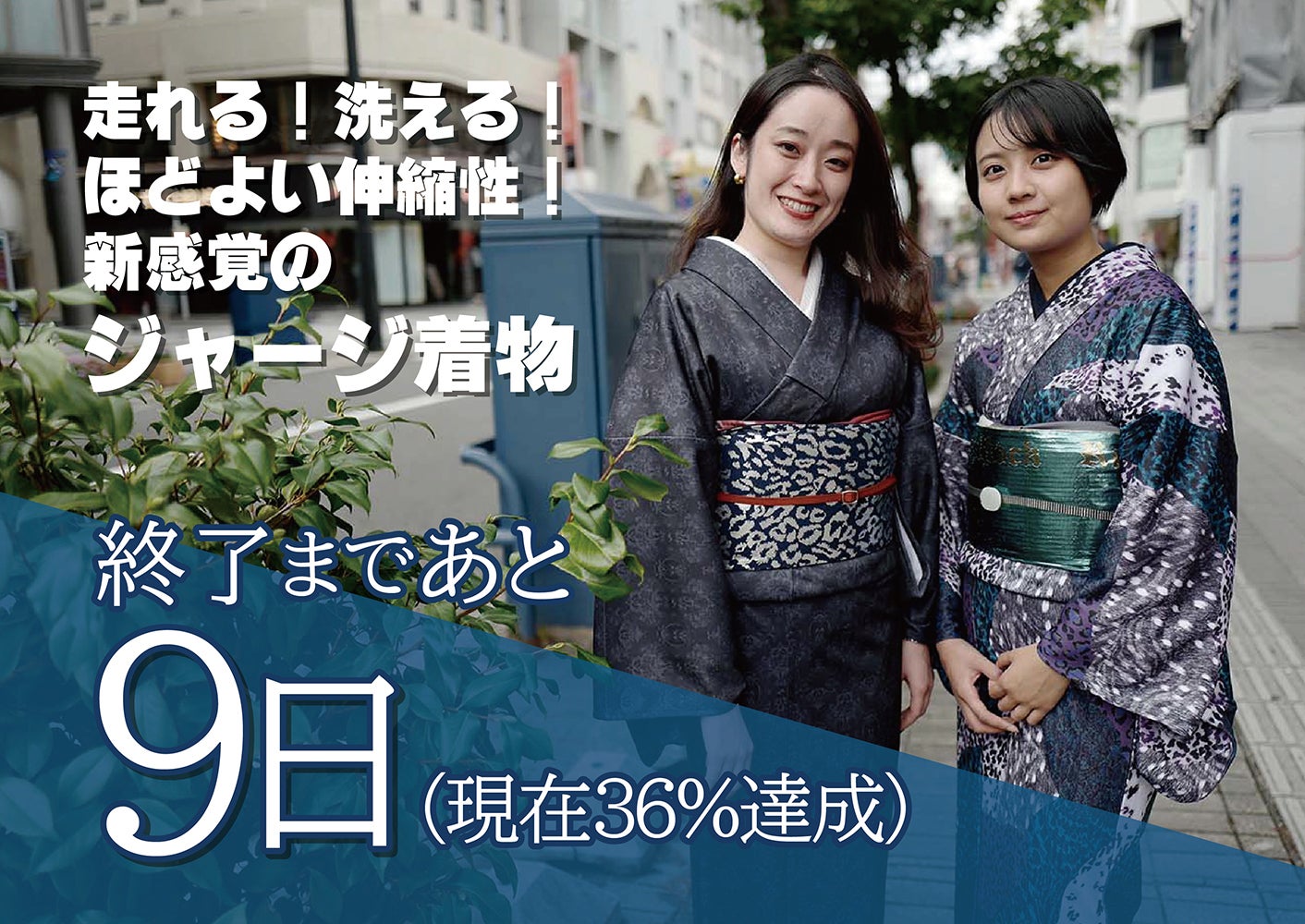 こんにちは!キモノグラースです。「走れる!洗える!ほどよい伸縮性!新感覚のジャージ着物」プロジェクトを応援いただきありがとうございます。皆様からの暖かいご支援により、ここのところ伸び悩んではおりますが、達成率36%まできています。心より感謝御礼を申し上げます。いよいよあと4日になりました!残り4日で100%達成を目指すため、ぜひぜひ!プロジェクトページをSNSなどでシェアしていただければと思います。https://camp-fire.jp/projects/view/610716【ご支援の締め切りは10月30日23時59分までです】人気ブランドさんとコラボした、キモノグラースにしかないジャージ着物が1万円OFFで手に入るのも、あと4日だけです!「なんて着やすそうな着物!」「こんな着物を待ってた!」と思って頂ける方や、「着物って敷居が高いと思ってた!」と言う方の目に留まりますように…。どうぞご協力お願い致します。
