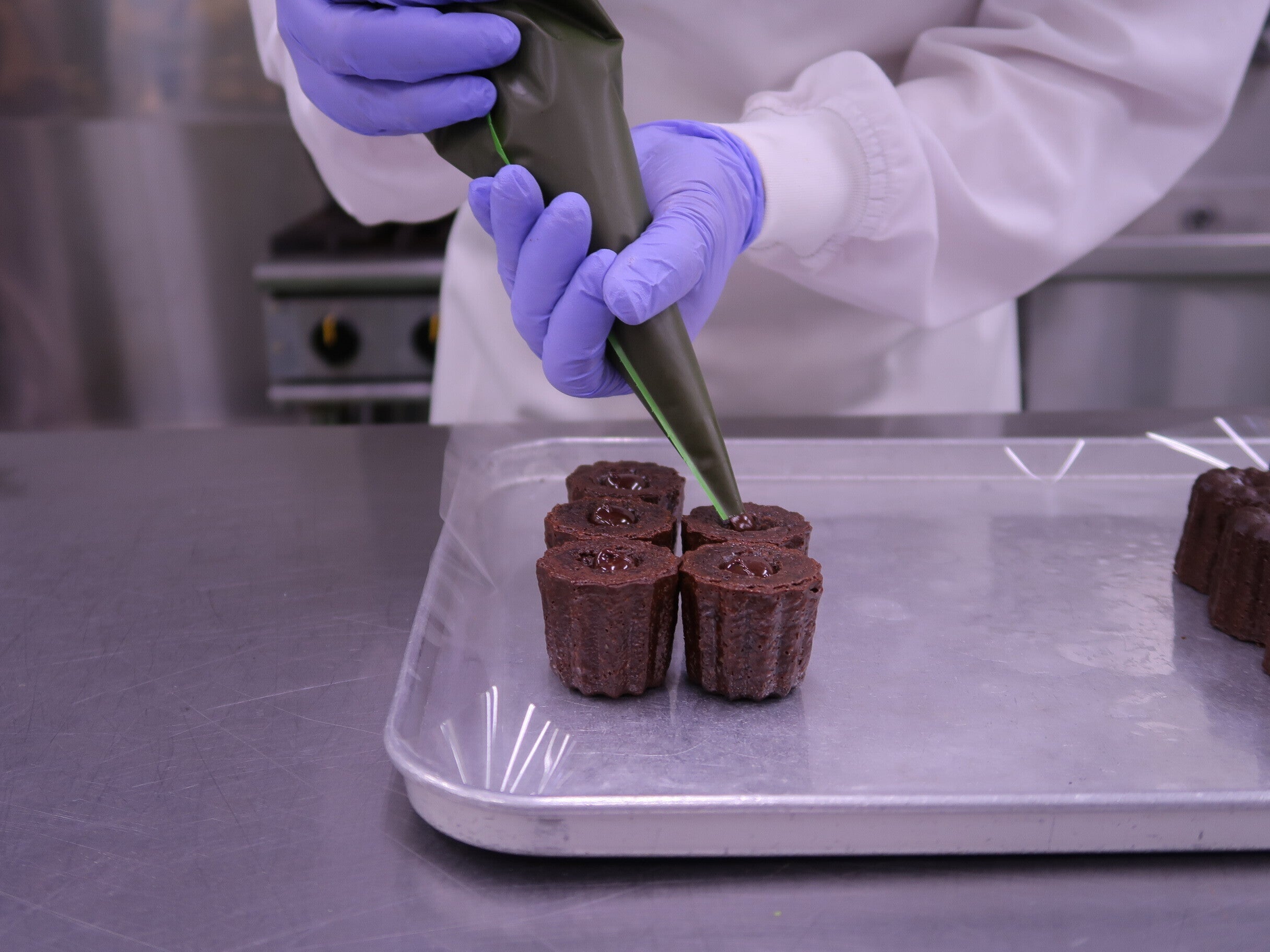 カヌレの中にはベルギー産クーベルチュールチョコレートを使用したガナッシュも入れています。