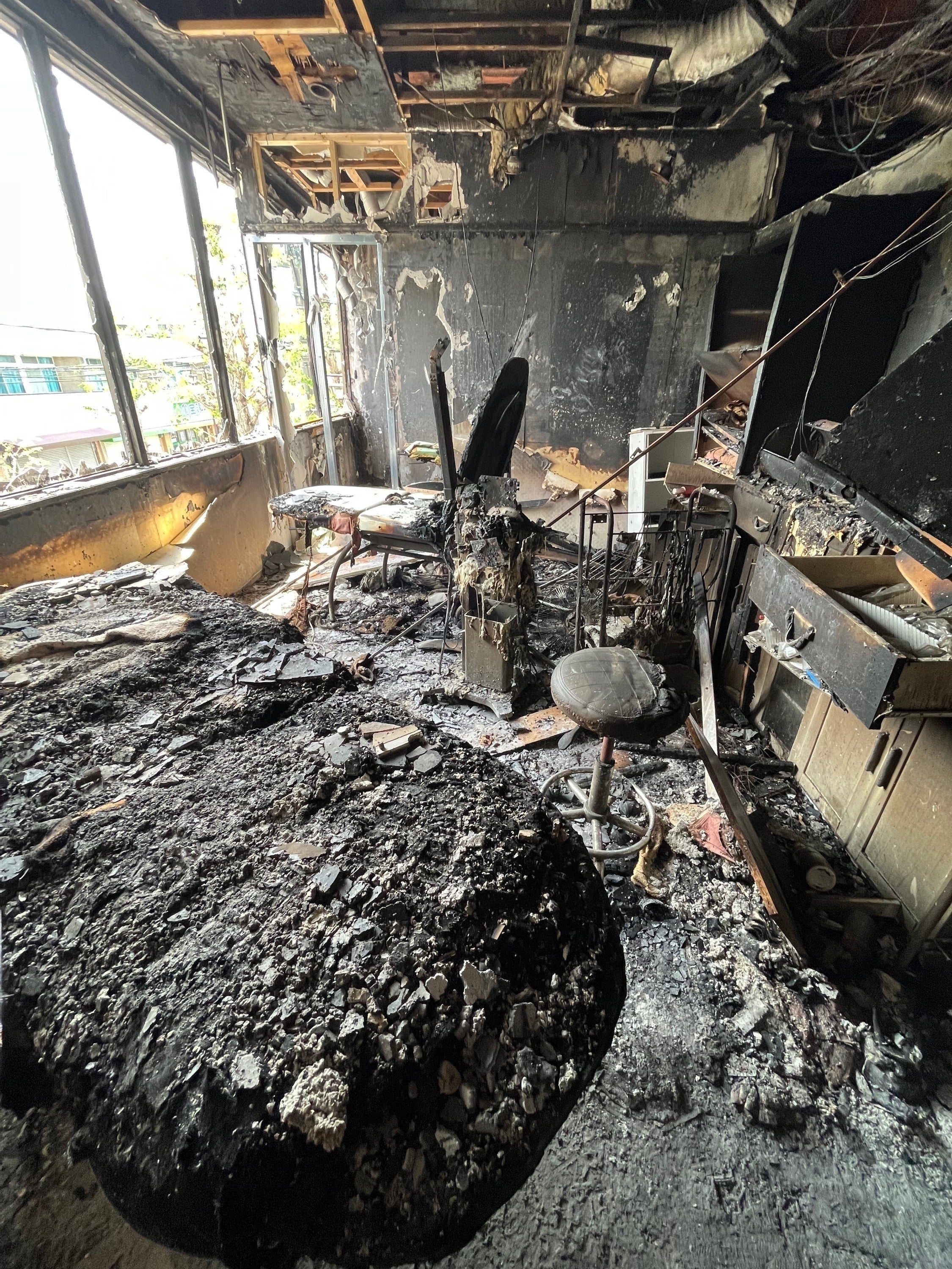 今年4月。現在宝石店、エステサロン、調剤薬局を経営する私たちの働くビルに、青年の運転する車が事故を起こし、車がビルに突っ込み炎上、ビルが全焼し、店舗も全て燃えてなくなってしまいました…。