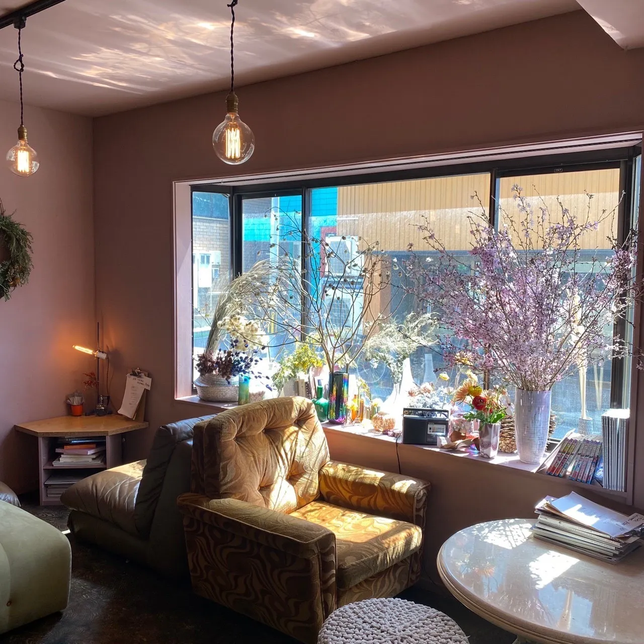 お店は、昼から呑めるカフェスナックだったり、フローリスト安田が手掛けるお花屋さんだったり、アパレルや雑貨も少し置いていて、飲食スペースは10席ほどを設けております。