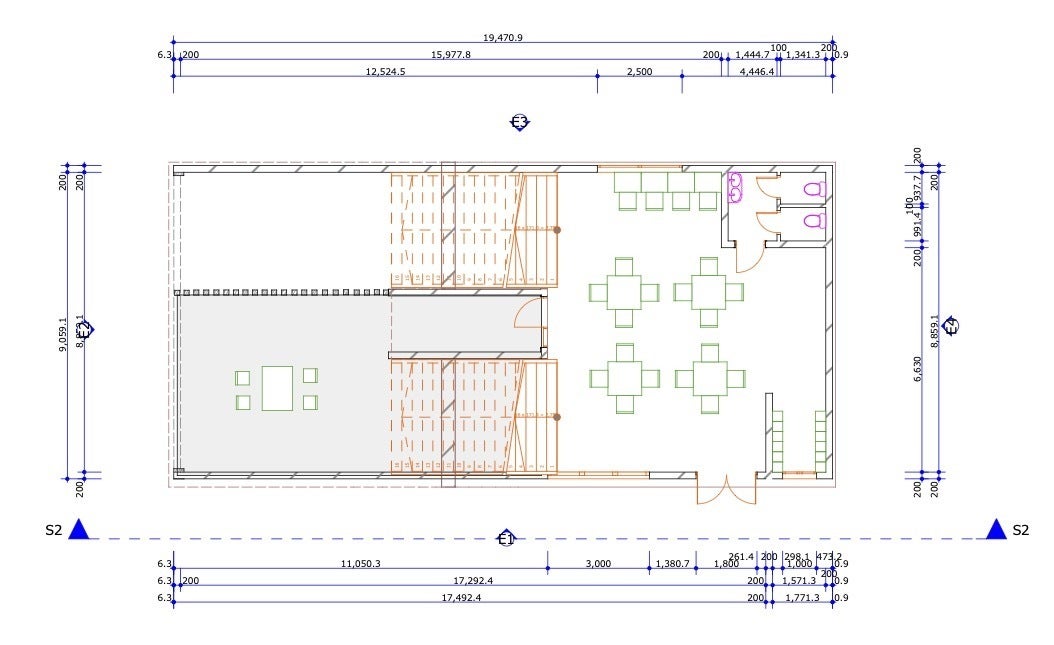 初めて描いた図面(コモンルーム)。NZでは高校生ながらArchiCADを使用していました。先生もソフトの使い方を理解しておらず、間違いだらけの図面です^^; 当時はSANNAAの妹島和代さんに憧れを抱きこのような建物に。