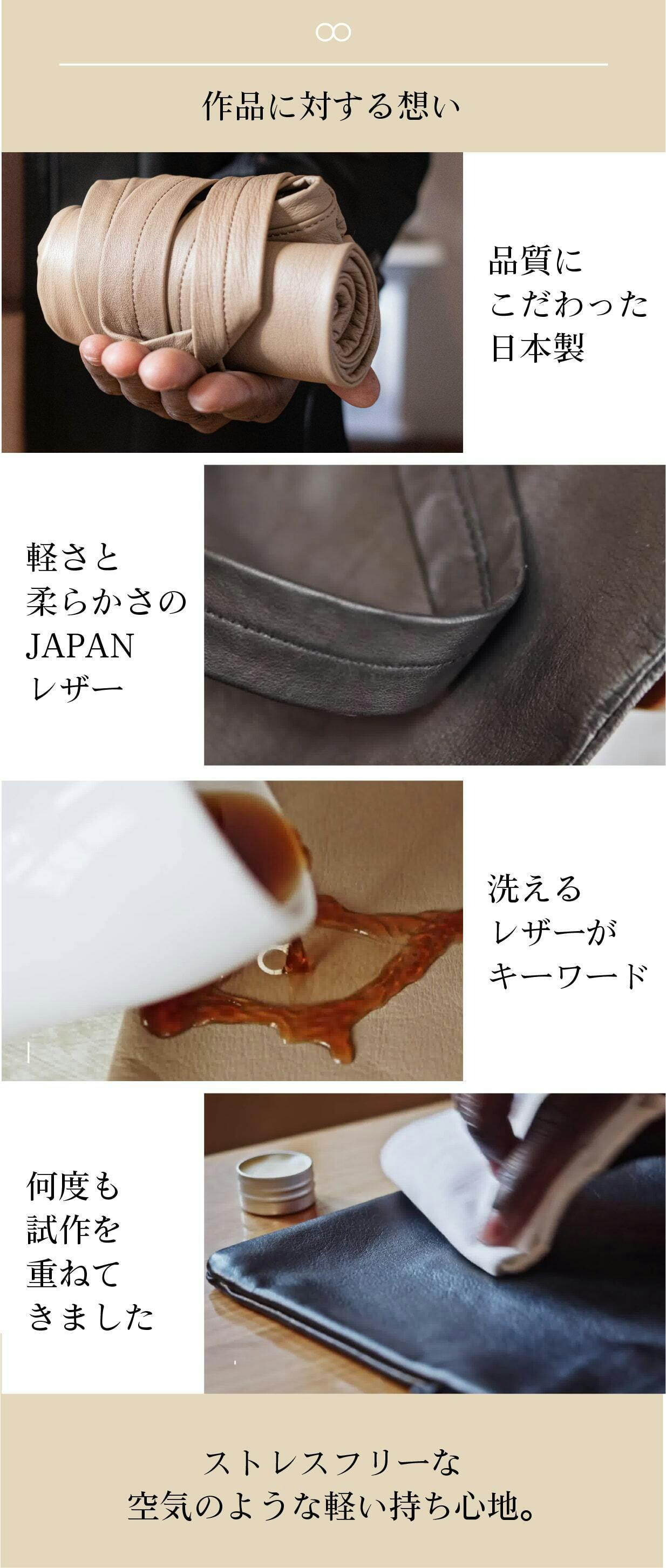 空気のように軽い持ち心地「o2」ブランドを生み出したAmpersand Co., Ltdから生まれた「軽量」&「本革」なのに「洗える」ミニマリストの洗えるレザーマルシェバッグの第2弾【ウォッシャブルレザージップバッグ】をご紹介します。