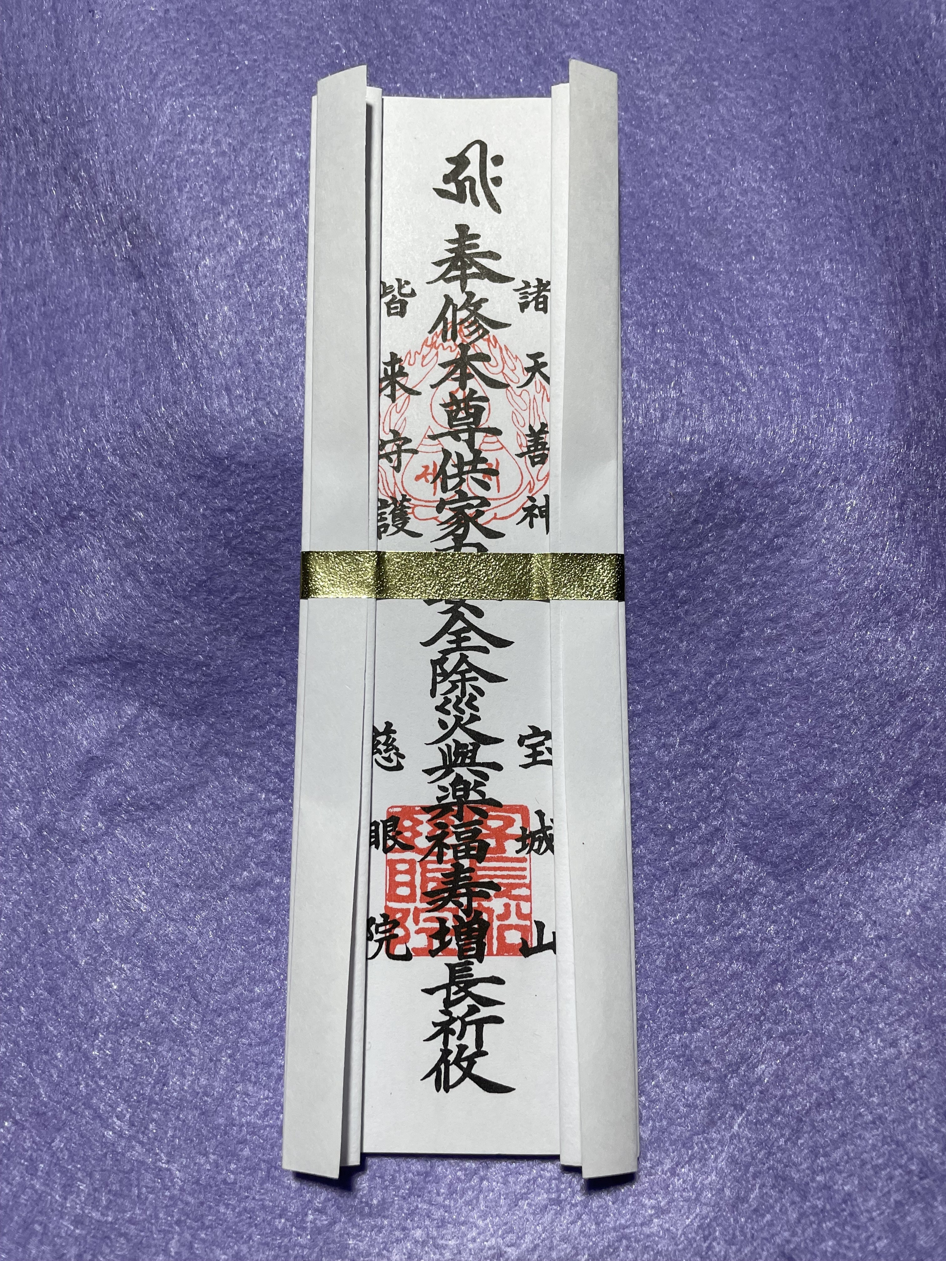 当山、本尊 阿弥陀如来様の御祈祷札です。家内安全、災難よけ、災い除け、福寿増長の祈願札です。