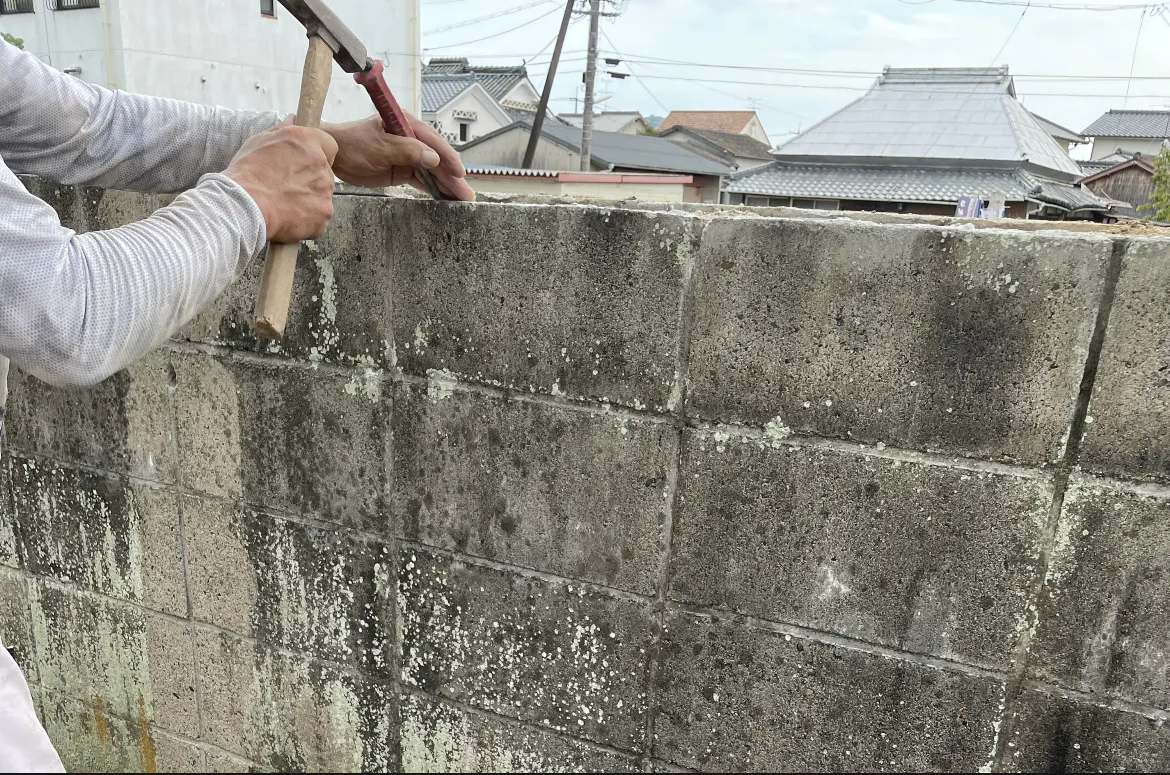 その合間に、ブロック塀の上の笠木を撤去して頂いています。
