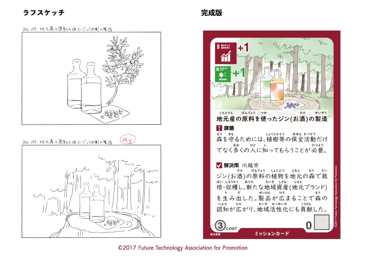 画像はイラストのラフスケッチからのミッションカード完成版です。