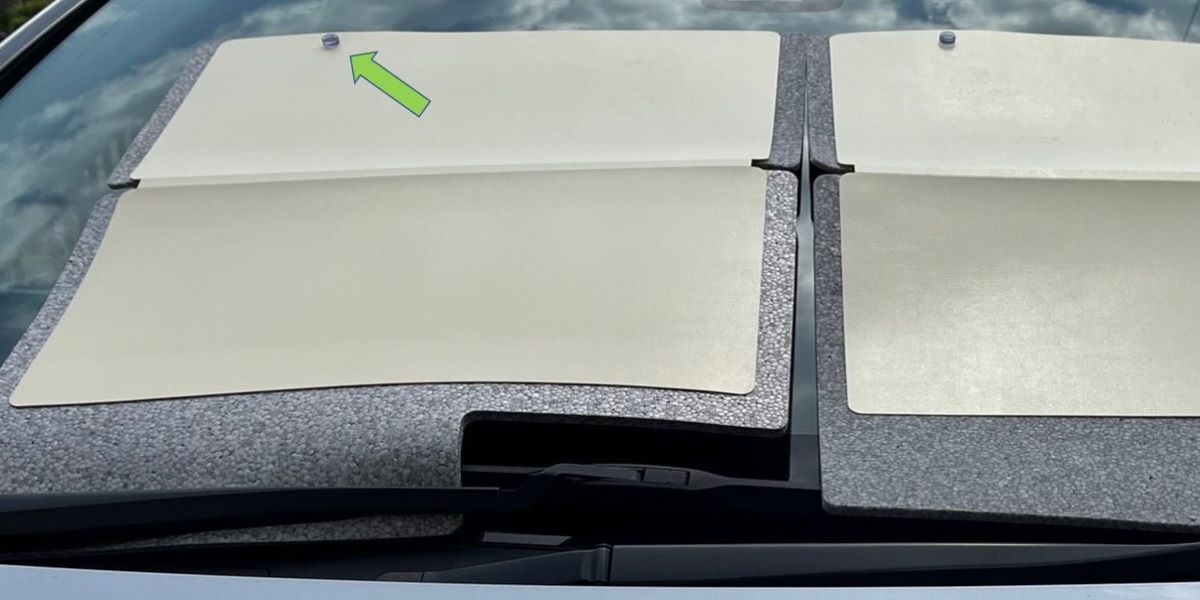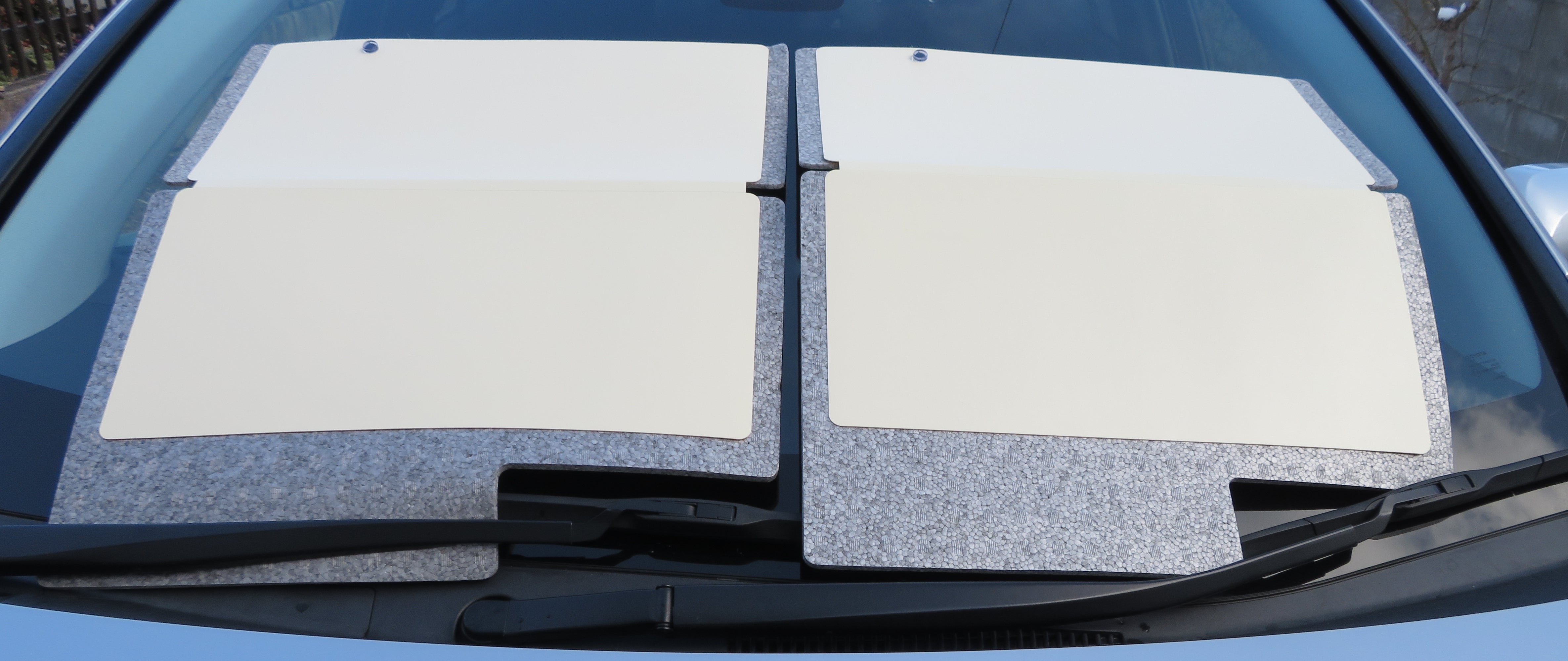 2枚同じようにして固定しフロントガラスを覆い完了です。