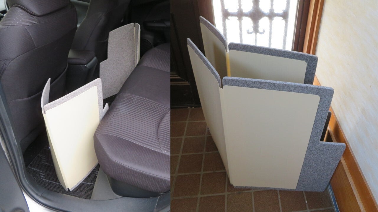 毎日使用できるよう、取付けが簡単で、1分程度で装着,脱着でき、使用後シートの表面は霜で濡れていますが、自動車の中あるいは玄関先に置いて(コンパクト収納)半日程度乾き、すぐ使用できます。