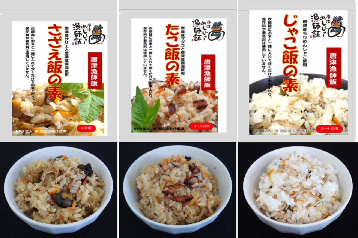 これまでに漁業者の6次化支援と魚食普及を目的に、消費者ニーズに合った簡単に食べることができる急速冷凍「唐津めしんしゃー漁師飯」を開発し、「2021日本ギフト大賞佐賀賞」および「ふるさとチョイスAWARD2012チョイス事業者部門ノミネート賞」を受賞しました。現在は、常温でも保存可能な「たこ飯の素」や「さざえ飯の素」、「じゃこ飯の素」も開発して、主力商品として販売につなげています。