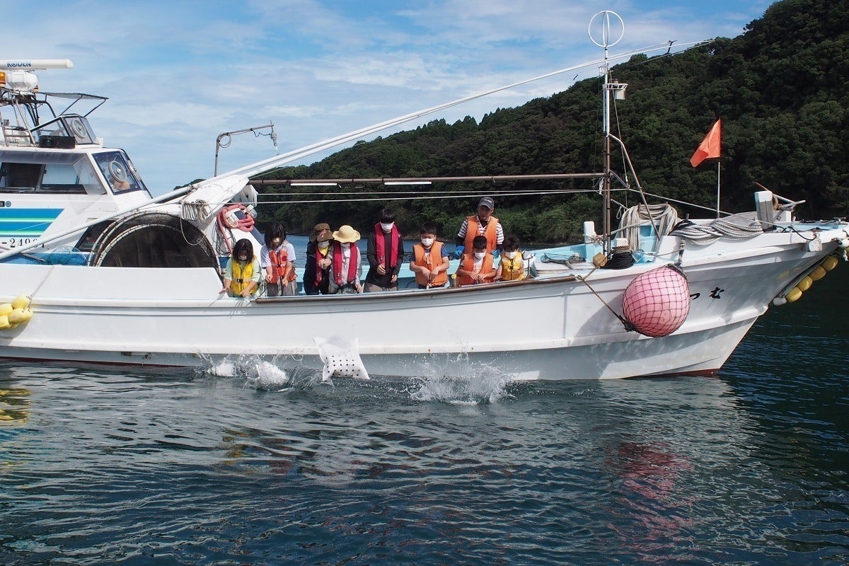 地元の子供たちによる母藻投入