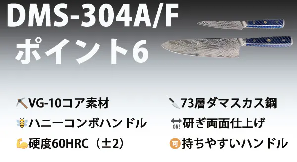 個人的な使用感ですがDMS-304Aは牛刀ですが「出刃包丁+柳刃包丁÷2+三徳包丁」というイメージです。